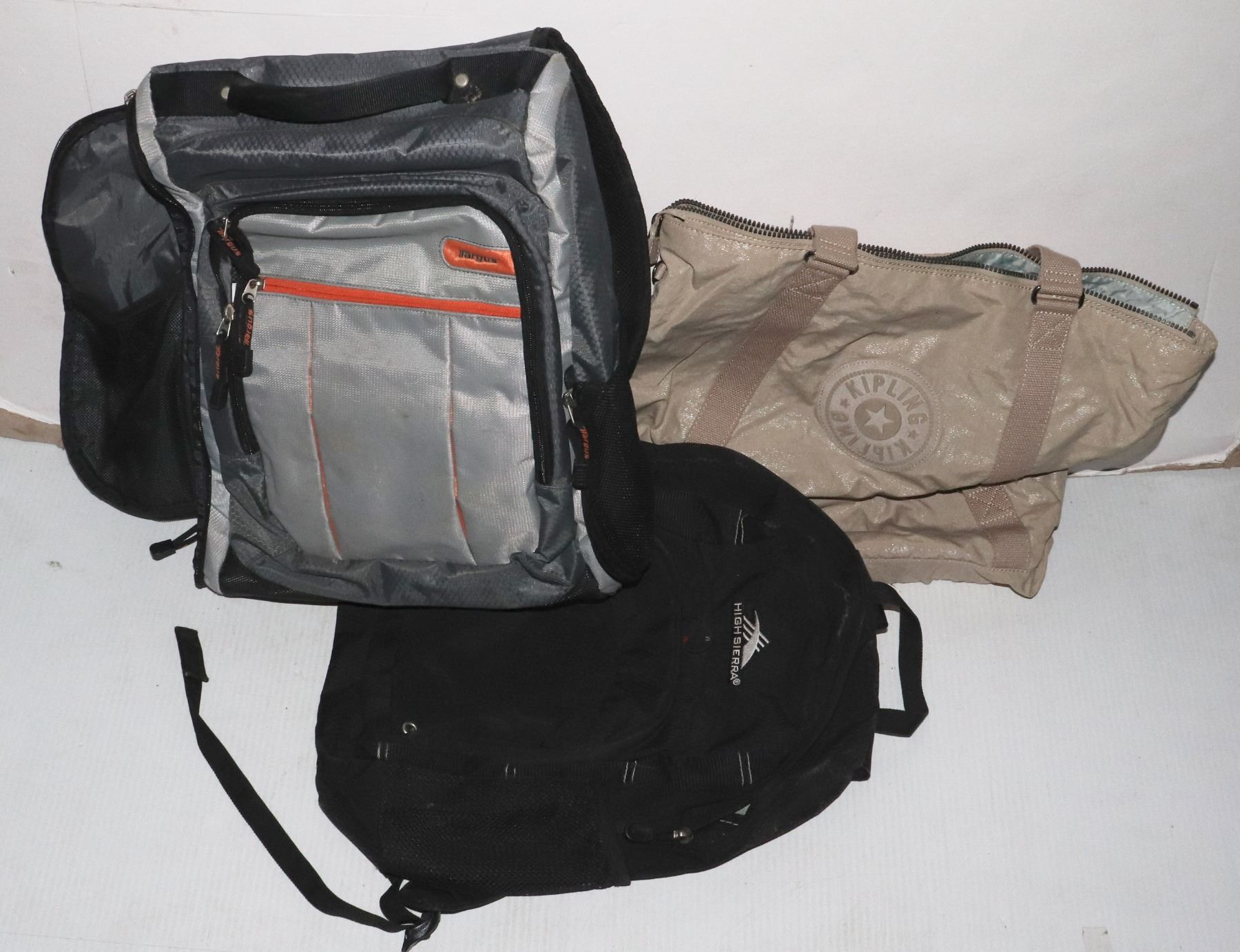2 BACKPACKS MAYNARD& HIGH SIERRA, 1 KIPLING SATCHEL, ALL USED, GOOD CONDITION