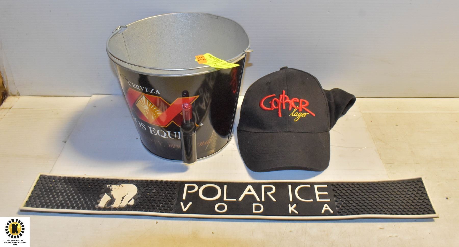 CORKSCREW, BIG ROCK HAT AND DOS EQUIS BUCKET