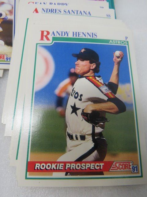 LOT OF BASEBALL CARDS (SCORE 91) *ASTROS, GIANTS, ATHLETICS, YANKEES, ETC* (10" HIGH STACK)