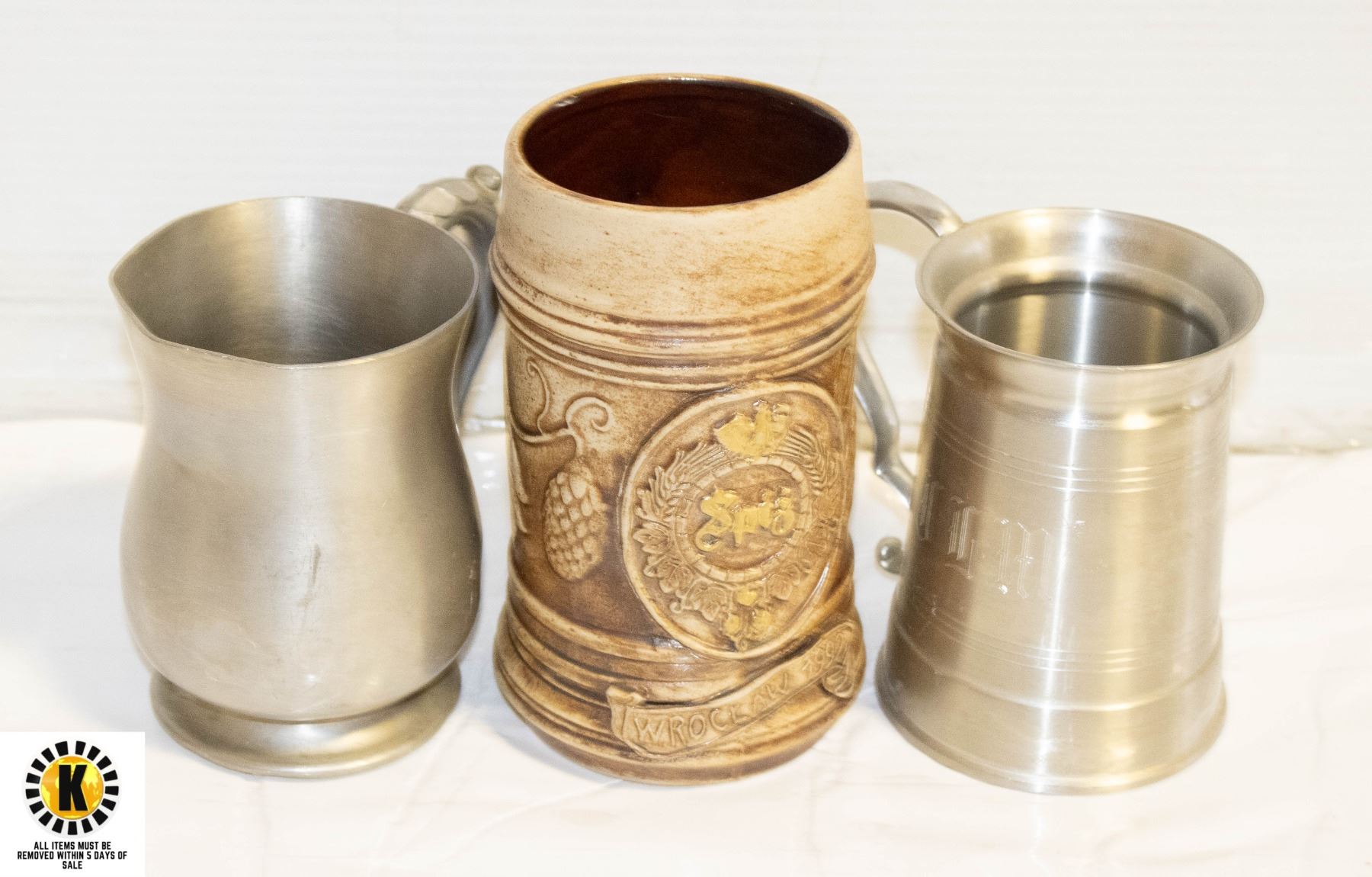 LOT OF BEER STEINS PEWTER AND CERAMIC