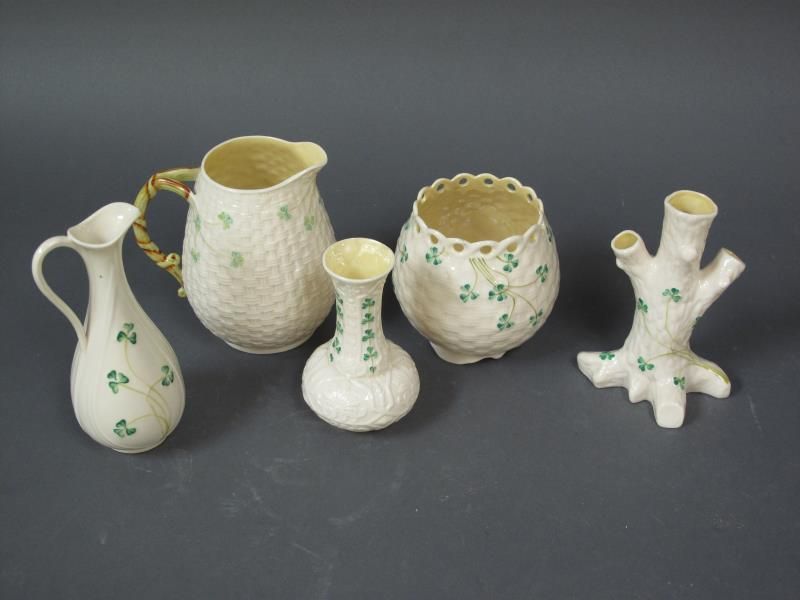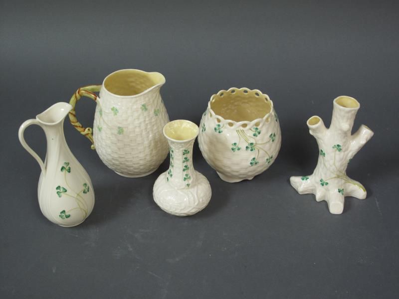 -assortment of five pieces of Belleek.