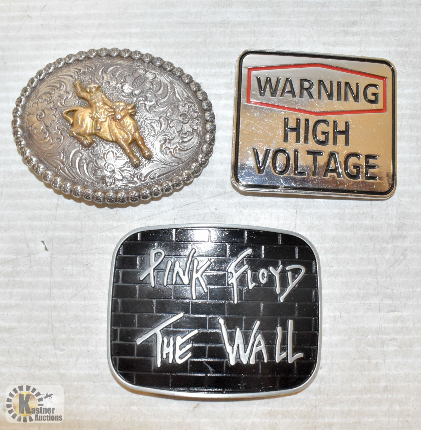 LOT OF BELT BUCKLES INCLUDING PINK FLOYD, HIGH VOL