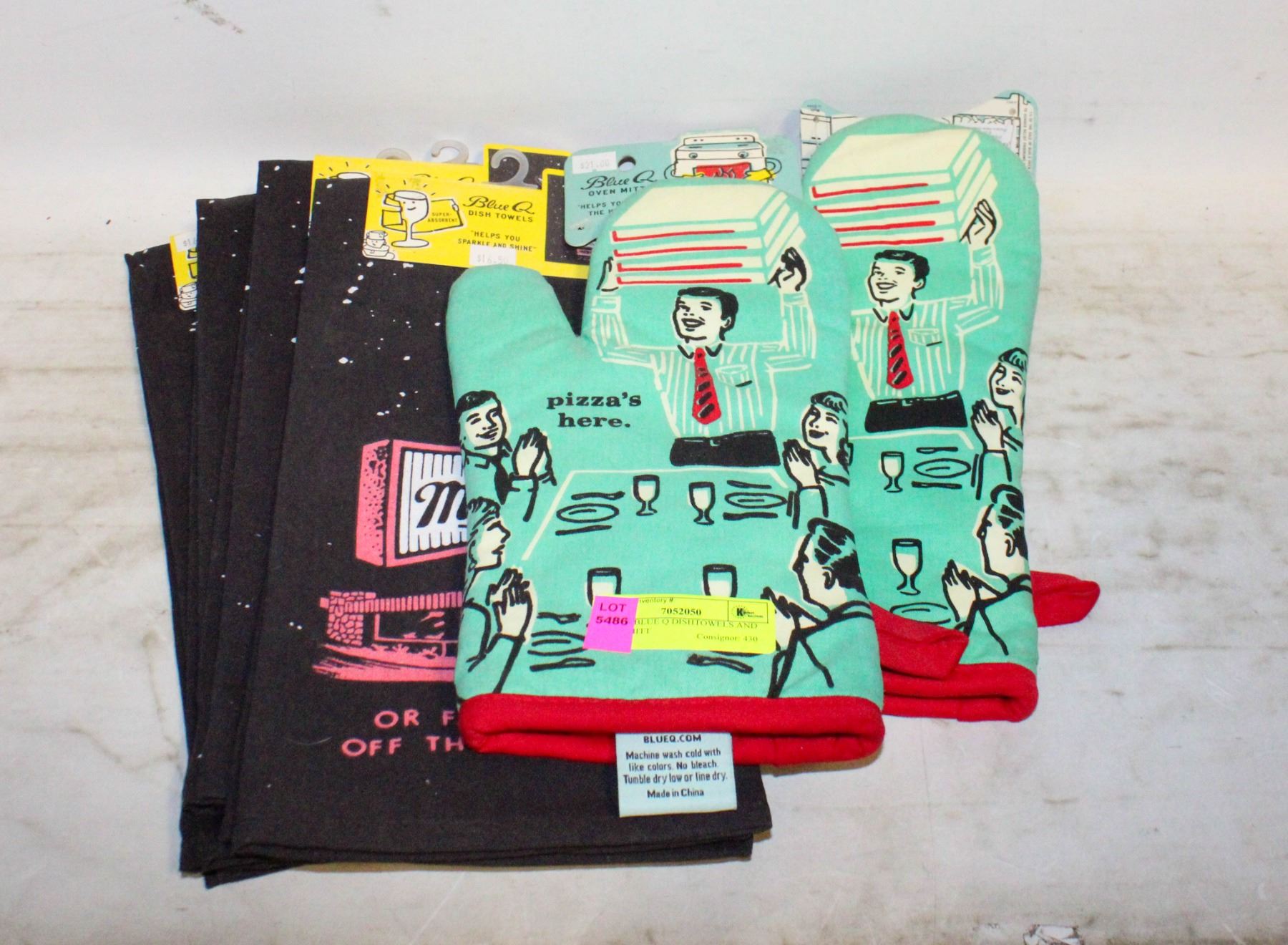 LOT OF BLUE Q DISHTOWELS AND OVEN MITT