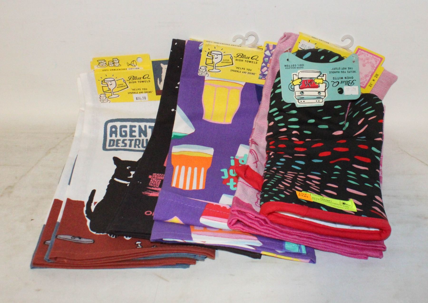 LOT OF BLUE Q DISHTOWELS AND OVEN MITT