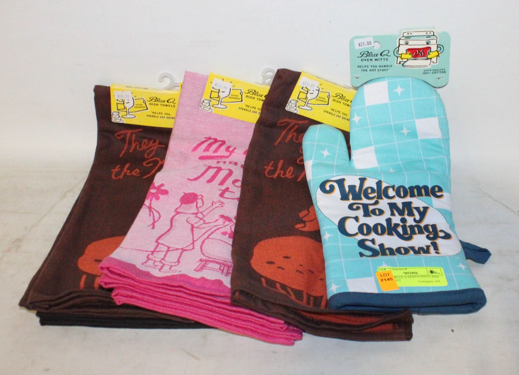 LOT OF BLUE Q DISHTOWELS AND OVEN MITT