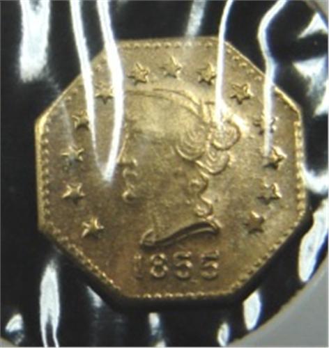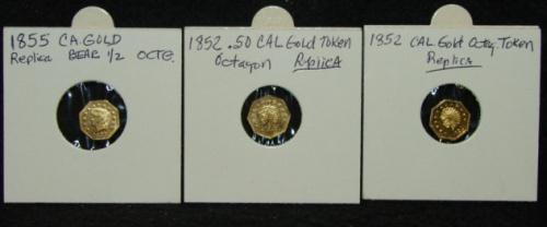 LOT OF 3 REPLICA CALIFORNIA GOLD TOKENS. Consists of one 1852 ½, 1855 ½, & 1852 with star on reverse. Octagonal.