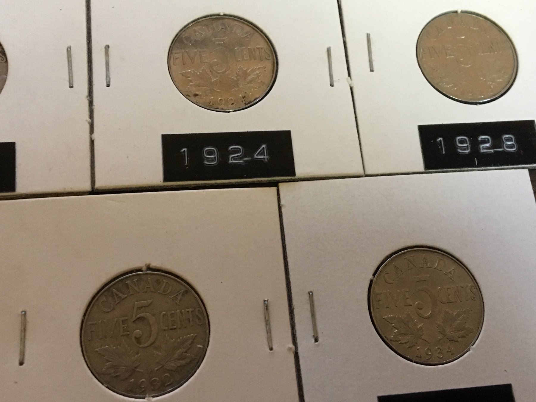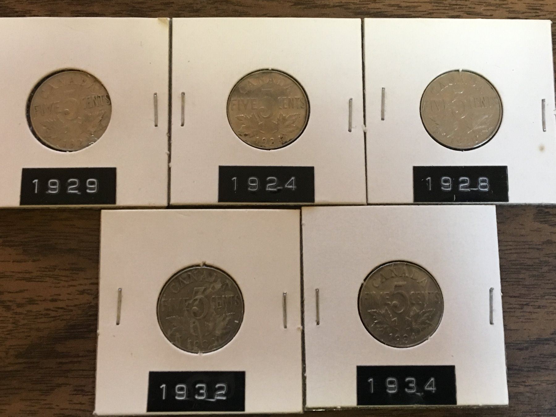 LOT OF CANADA 5 CENT COINS (1924 1928 1929 1932 1934)