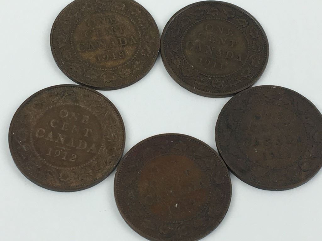 LOT OF CANADA LARGE PENNIES (1911, 12, 14, 18, 19)