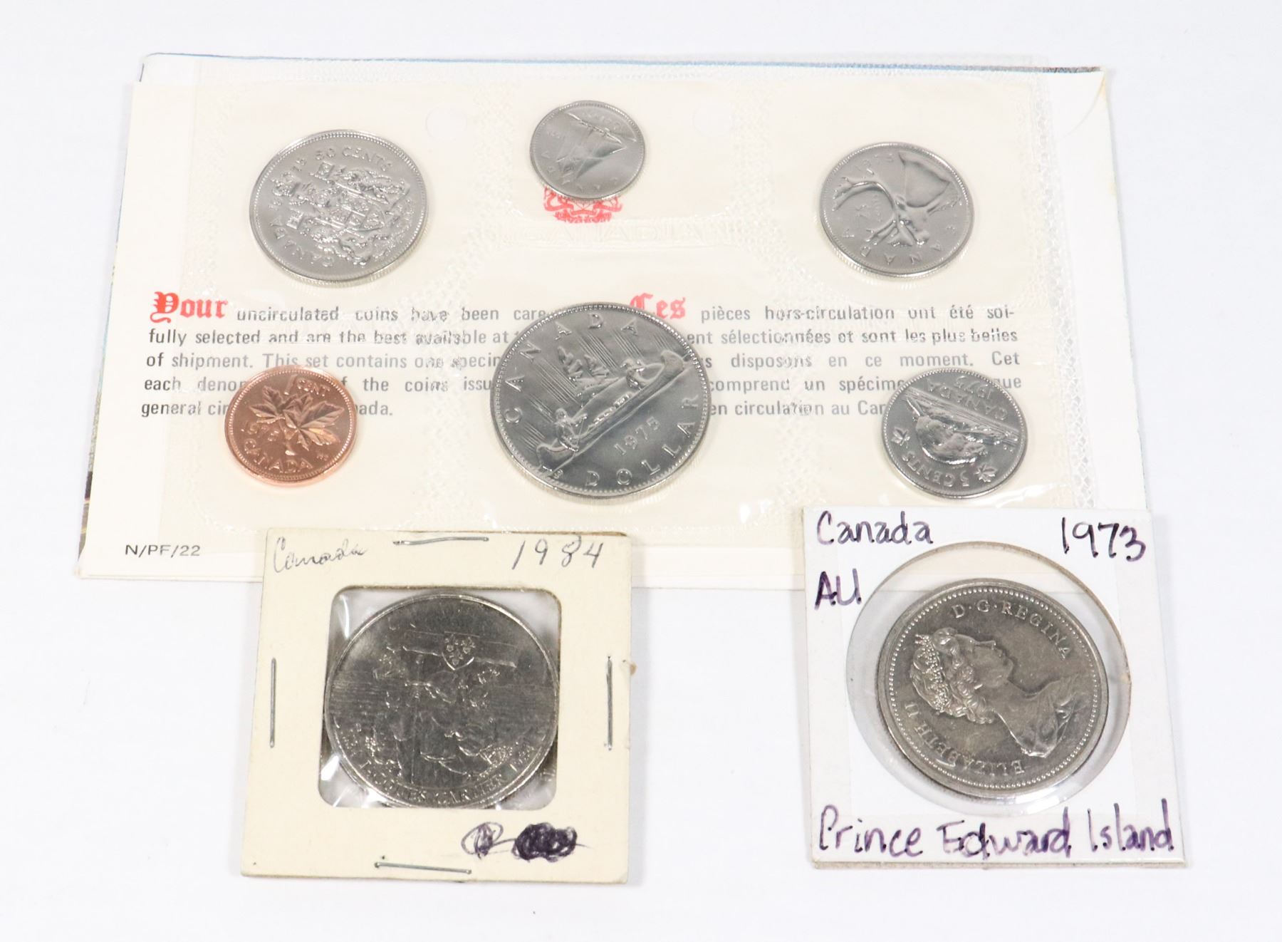 1984 CANADIAN $1 JACQUES CARTER 1973 CANADIAN $1 PRINCE EDWARD ISLAND 1975 6 CANADIAN COINS UNCIRCULATED WITH PROOF***ITEM(S) LOCATED IN LETHBRIDGE ALBERTA, FREE TRANSPORT TO OUR EDMONTON OFFICE AVAILABLE. WORLDWIDE SHIPPING IS AVAILABLE***