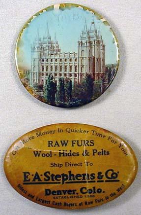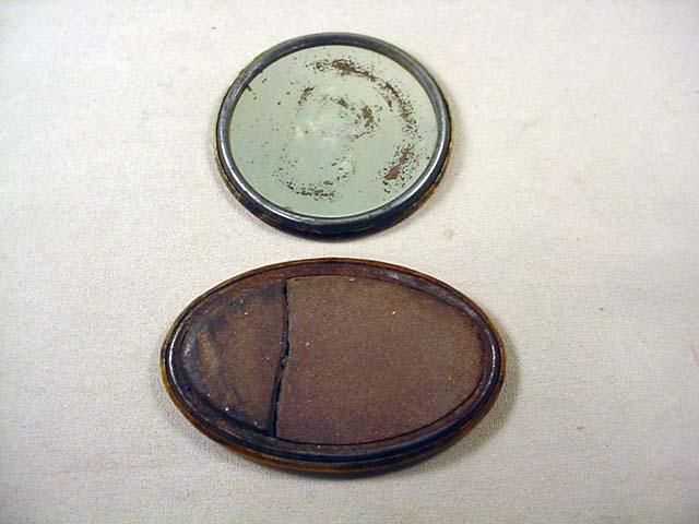 LOT OF CELLULOID - ADVERTISING SHARPENING STONE AND SOUVENIR POCKET MIRROR - Stone is for EA Stephens and Co. Raw furs