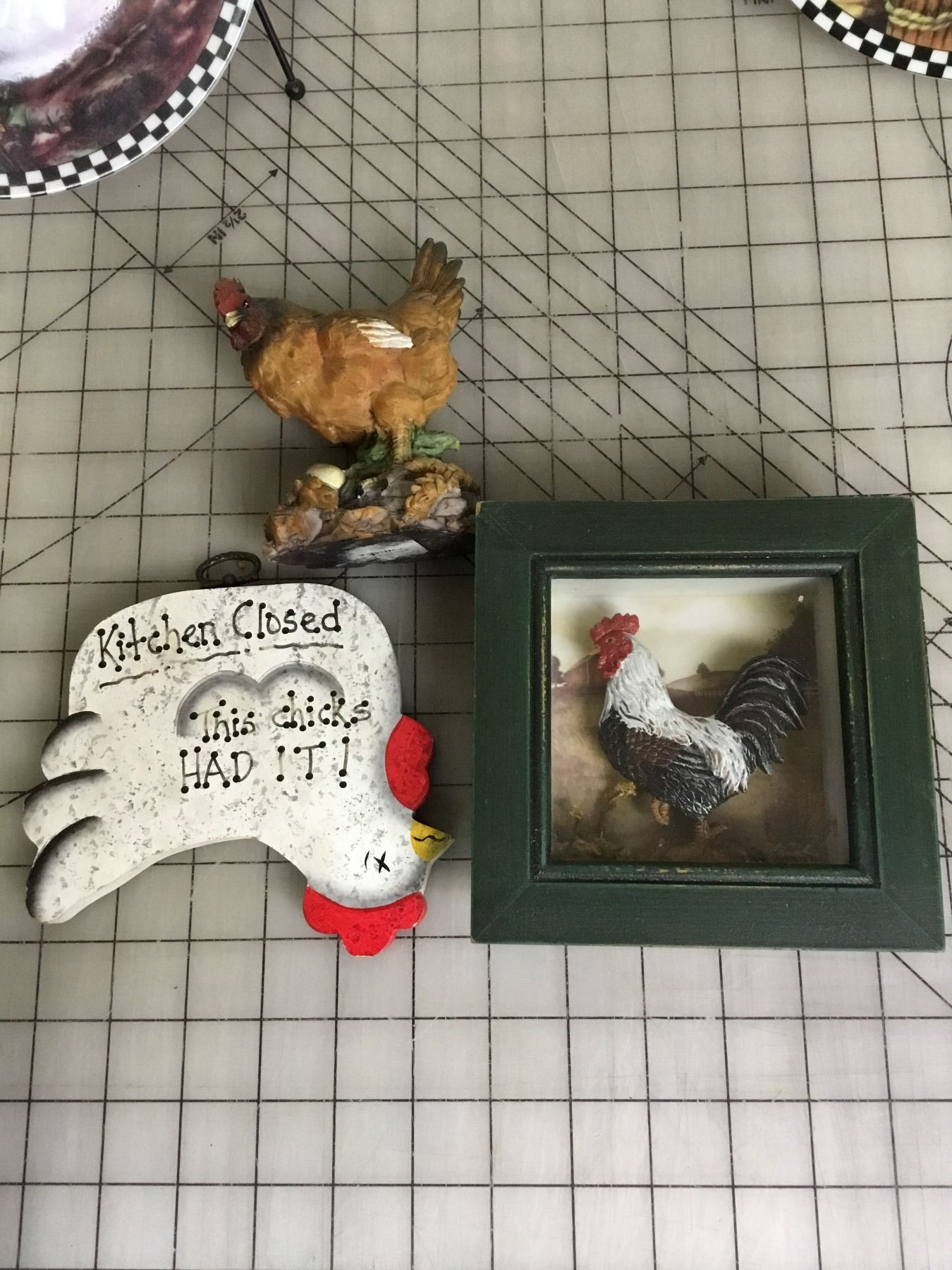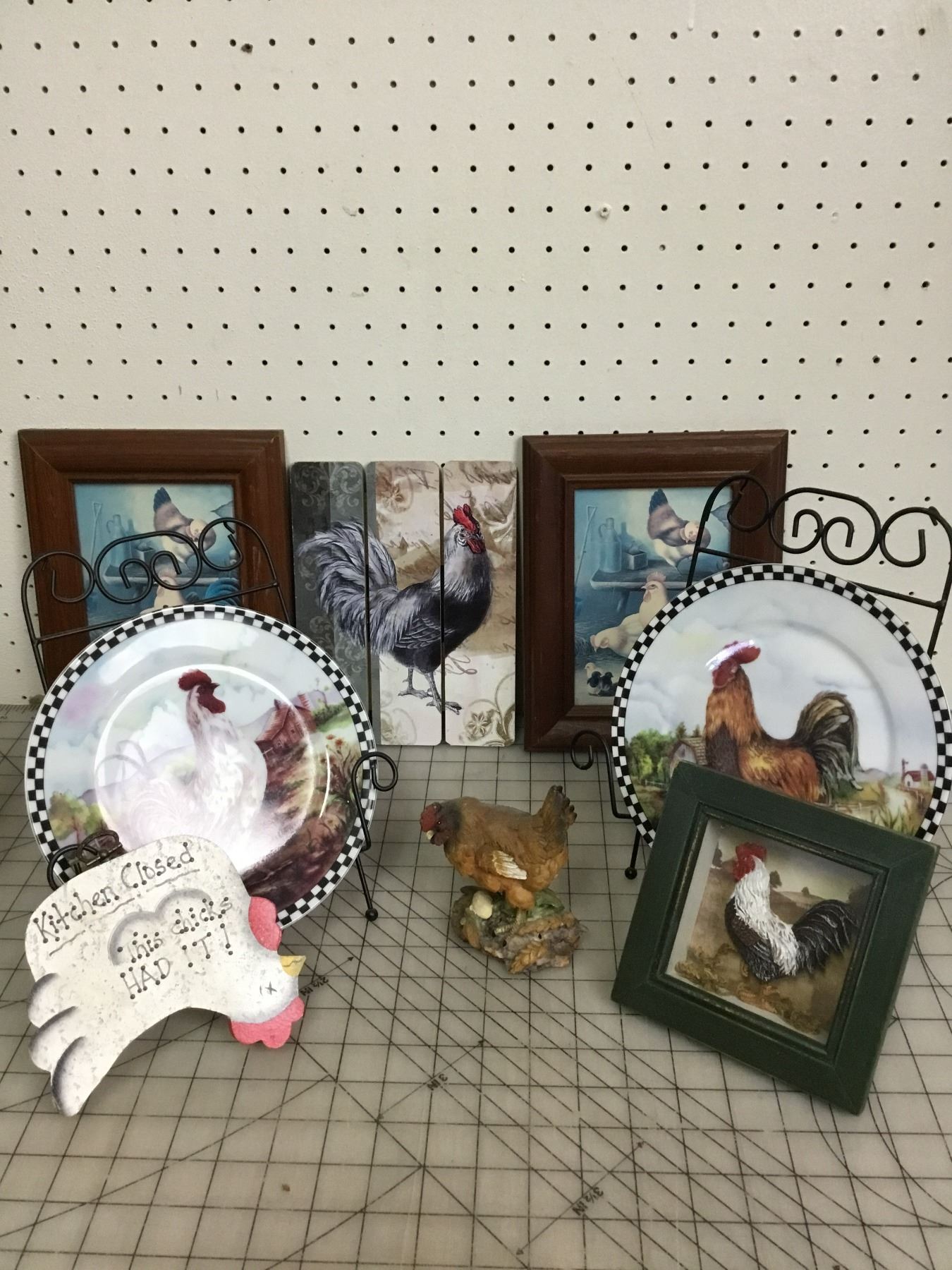 LOT OF CHICKEN DECORATIONS PLATES PICTURES ETC