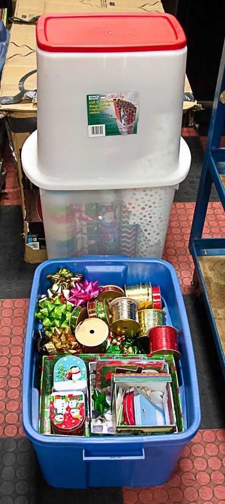 LOT OF CHRISTMAS GIFT BAGS, WRAPPING PAPER ETC