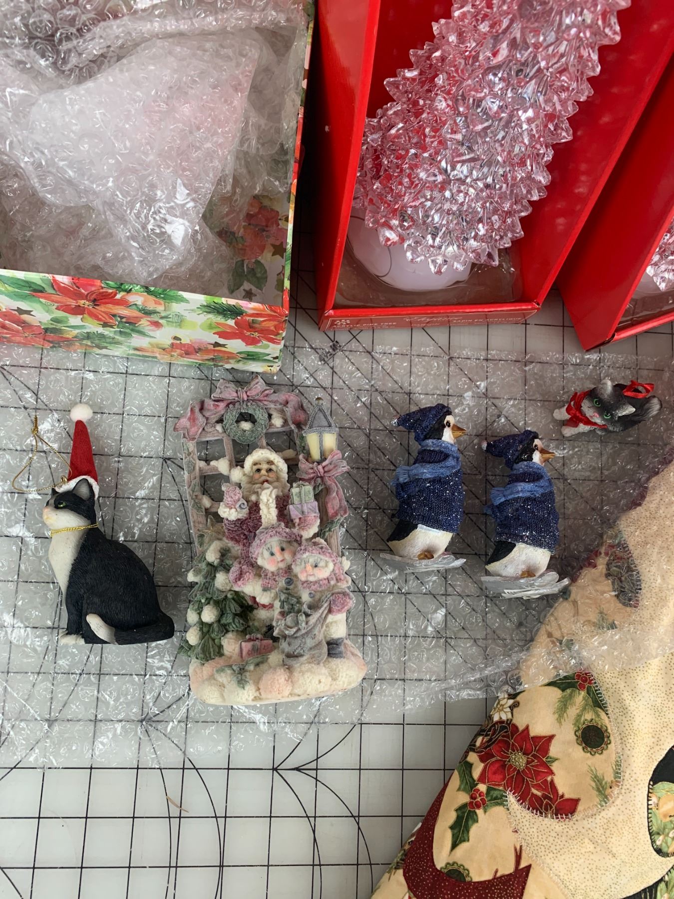 LOT OF CHRISTMAS ITEMS TREE SKIRT FIGURINES SKATING SNOWMEN ETC