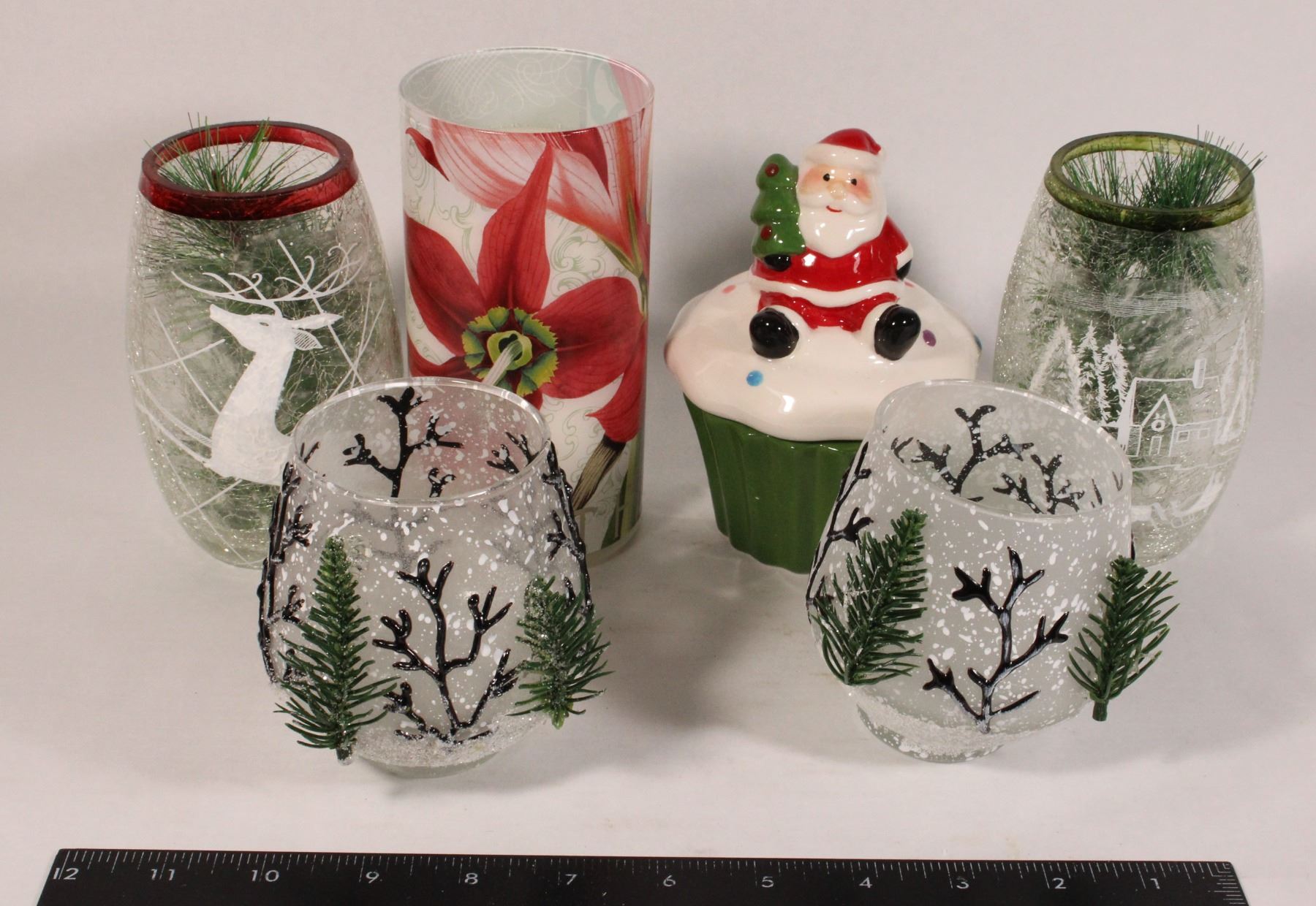 LOT OF CHRISTMAS THEMED GLASS ITEMS