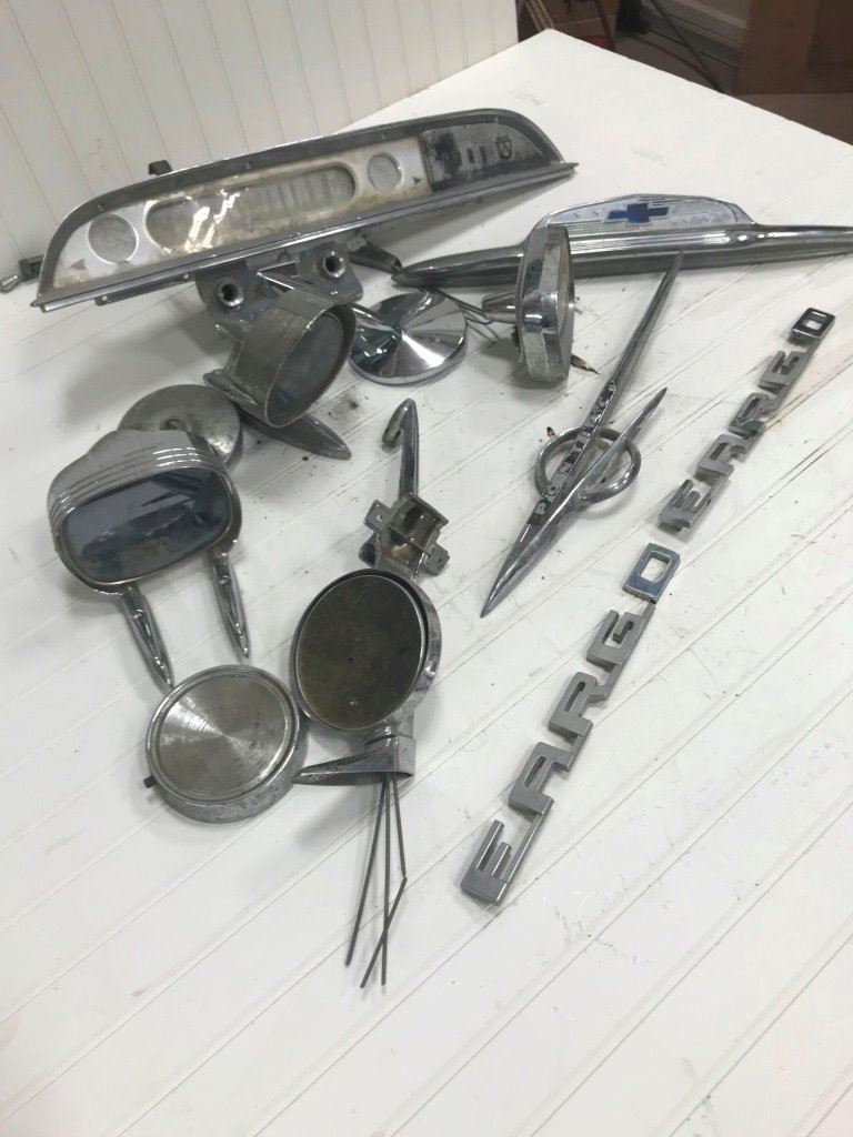 LOT OF CHROME MIRRORS, EMBLEMS & SPEEDOMETER