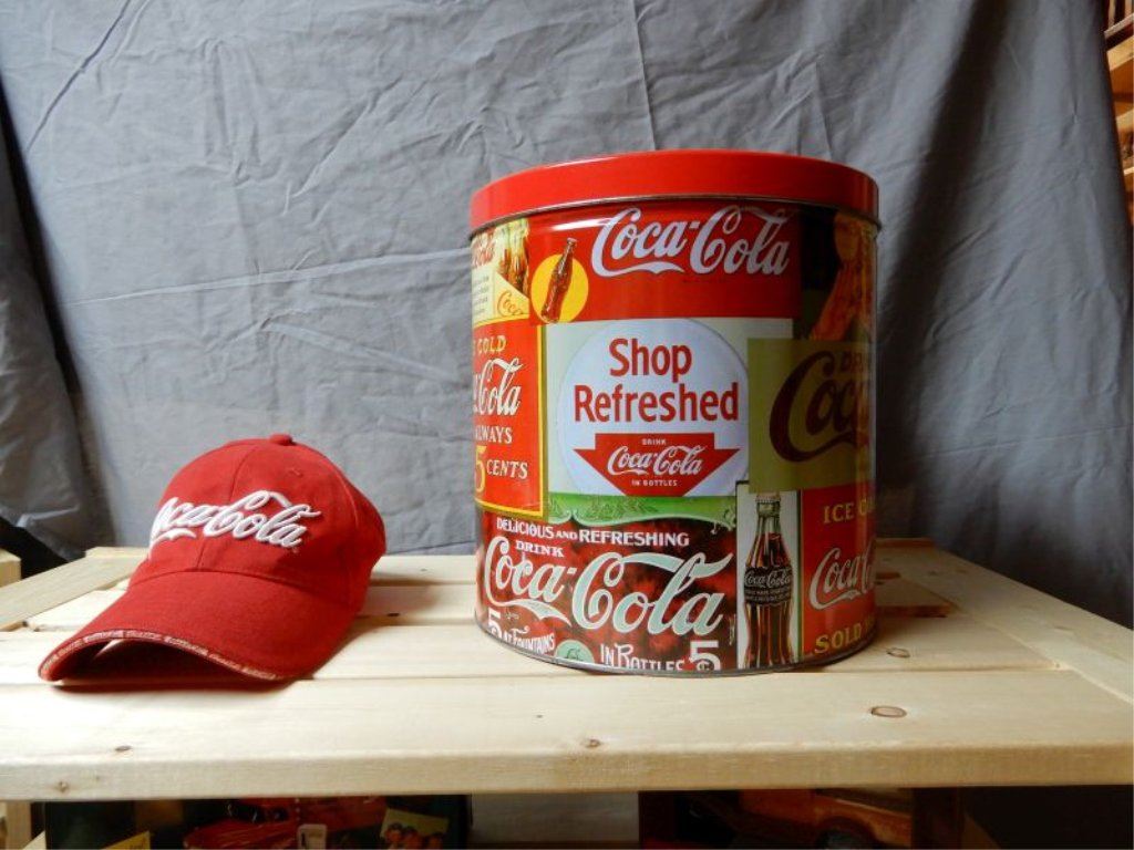LOT OF COCA-COLA COLLECTIBLES HAT - TIN - TOY COLLECTIBLES LOCATION: UPPER BACKROOM