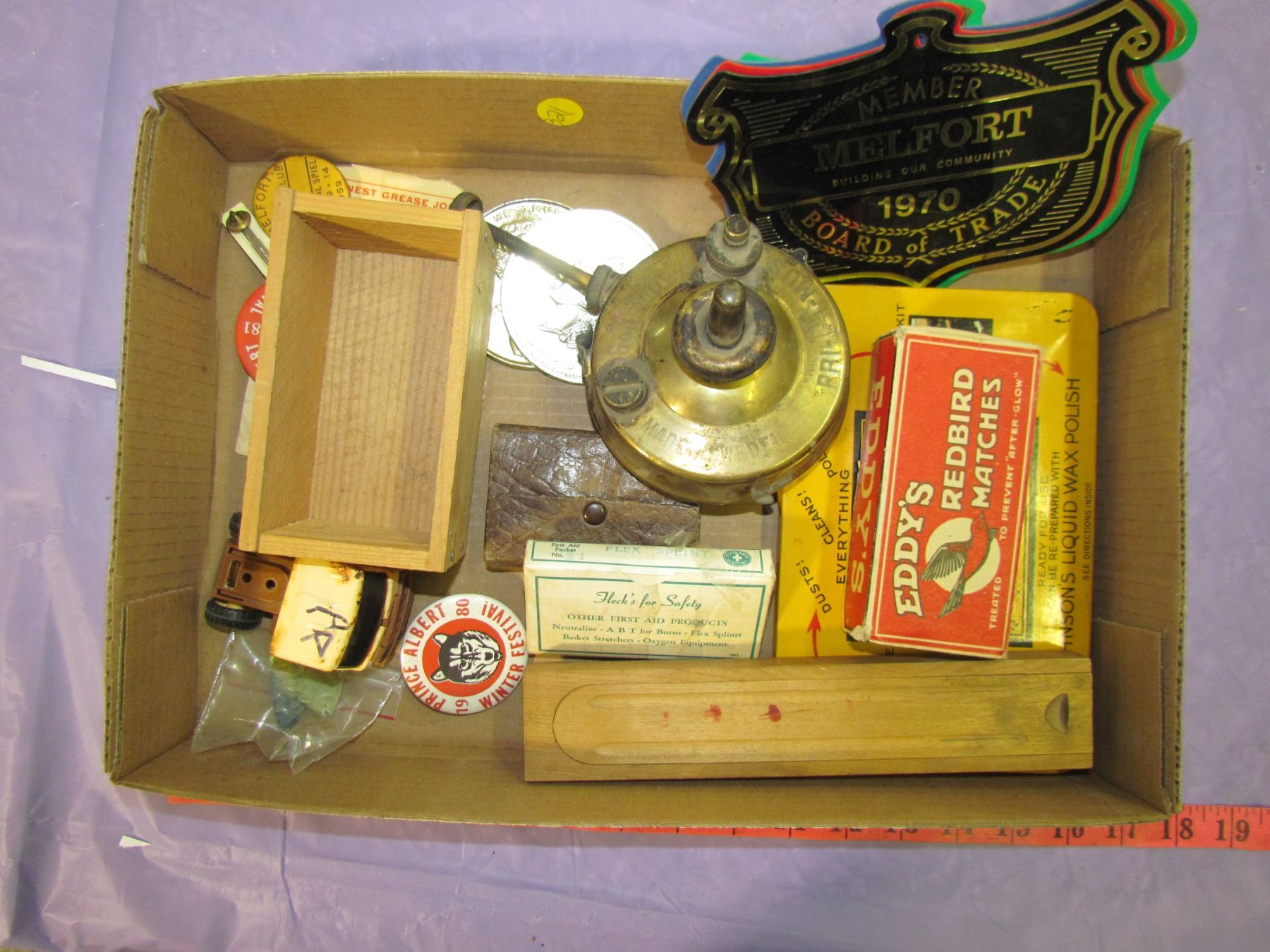 LOT OF COLLECTABLES INCLUDING PENCIL BOX AND TINS
