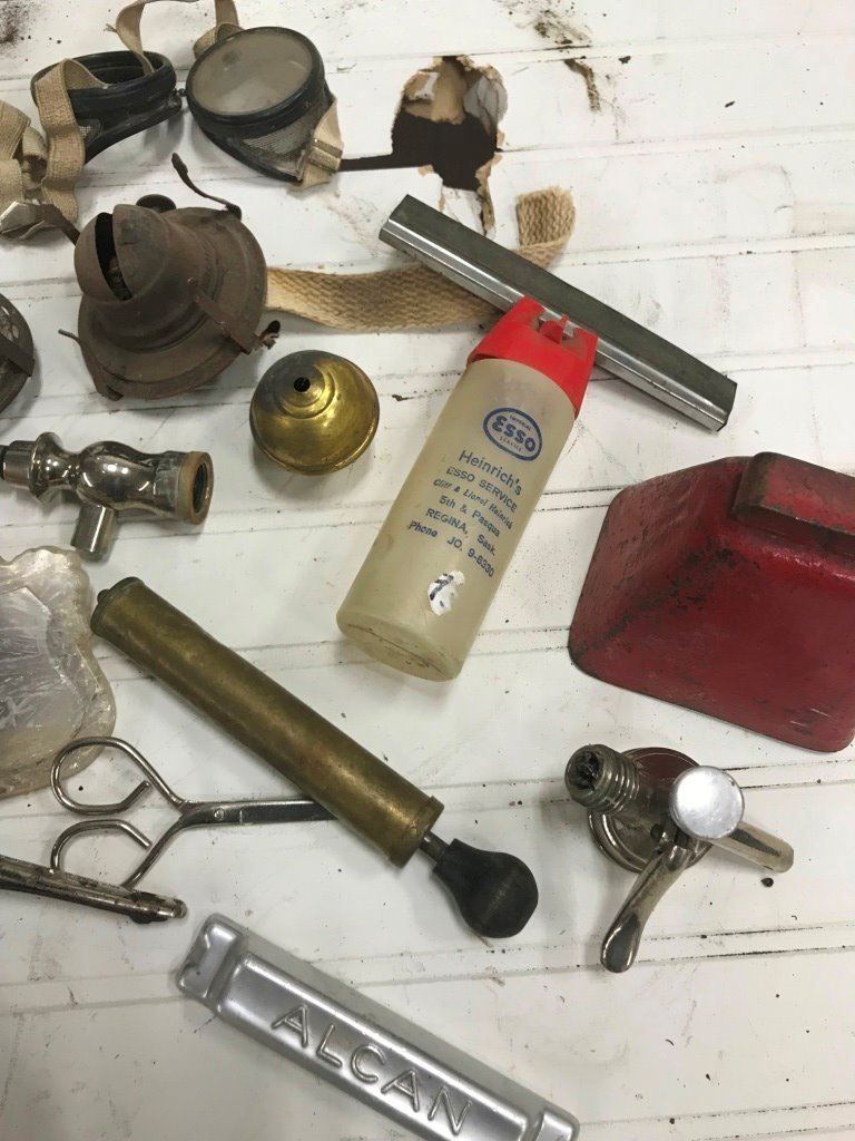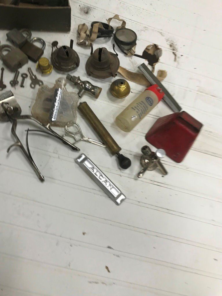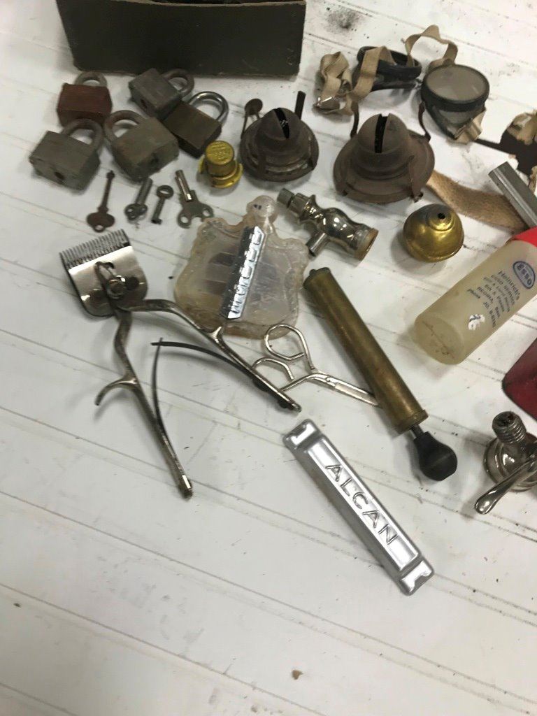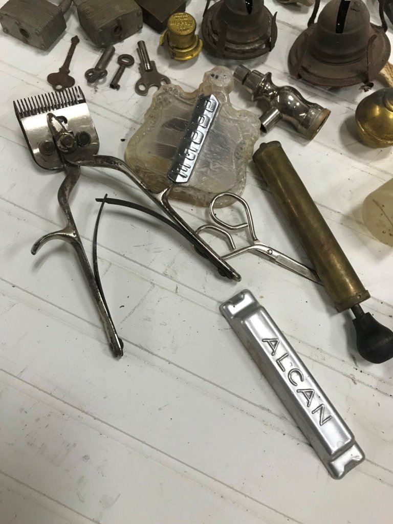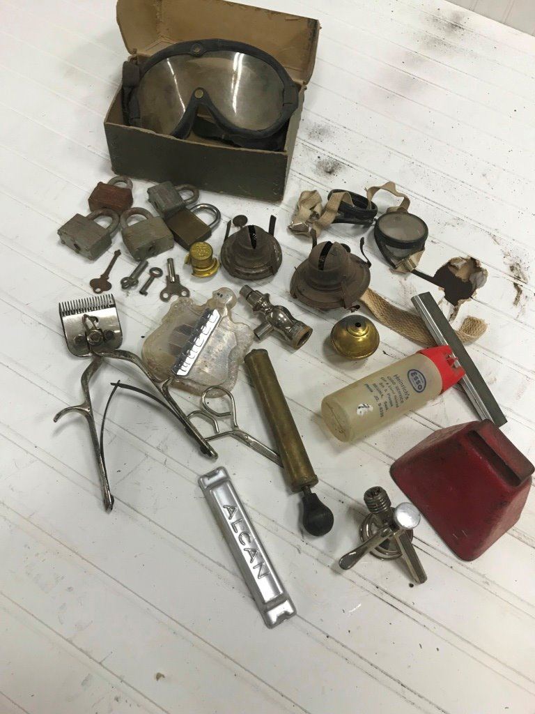 LOT OF COLLECTIBLE LAMP PARTS, GOGGLES, BELL, PICOTS, ETC.