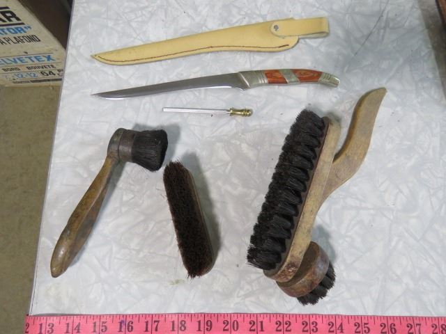 LOT OF COLLECTIBLE SHOE BRUSHES AND KNIFE