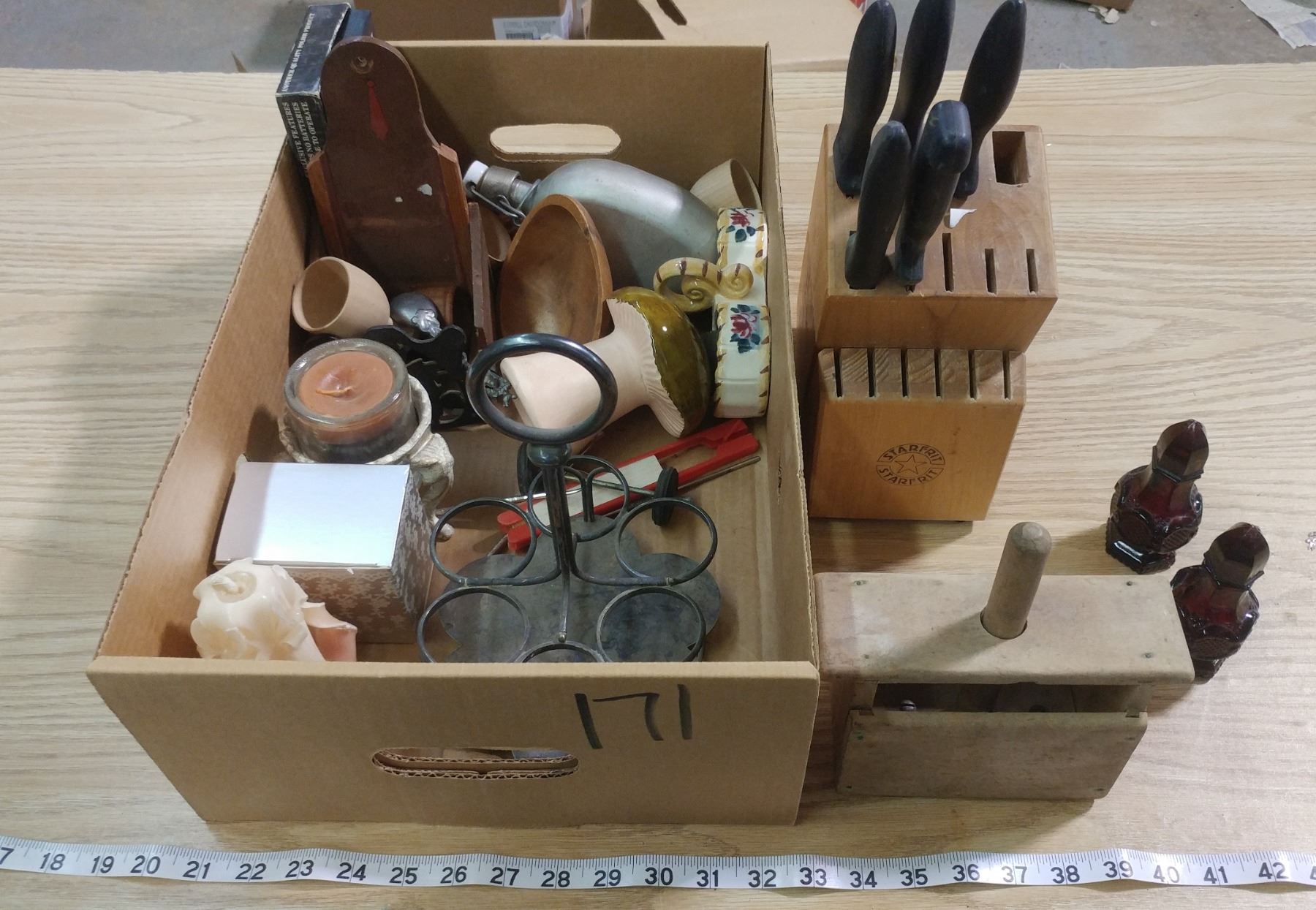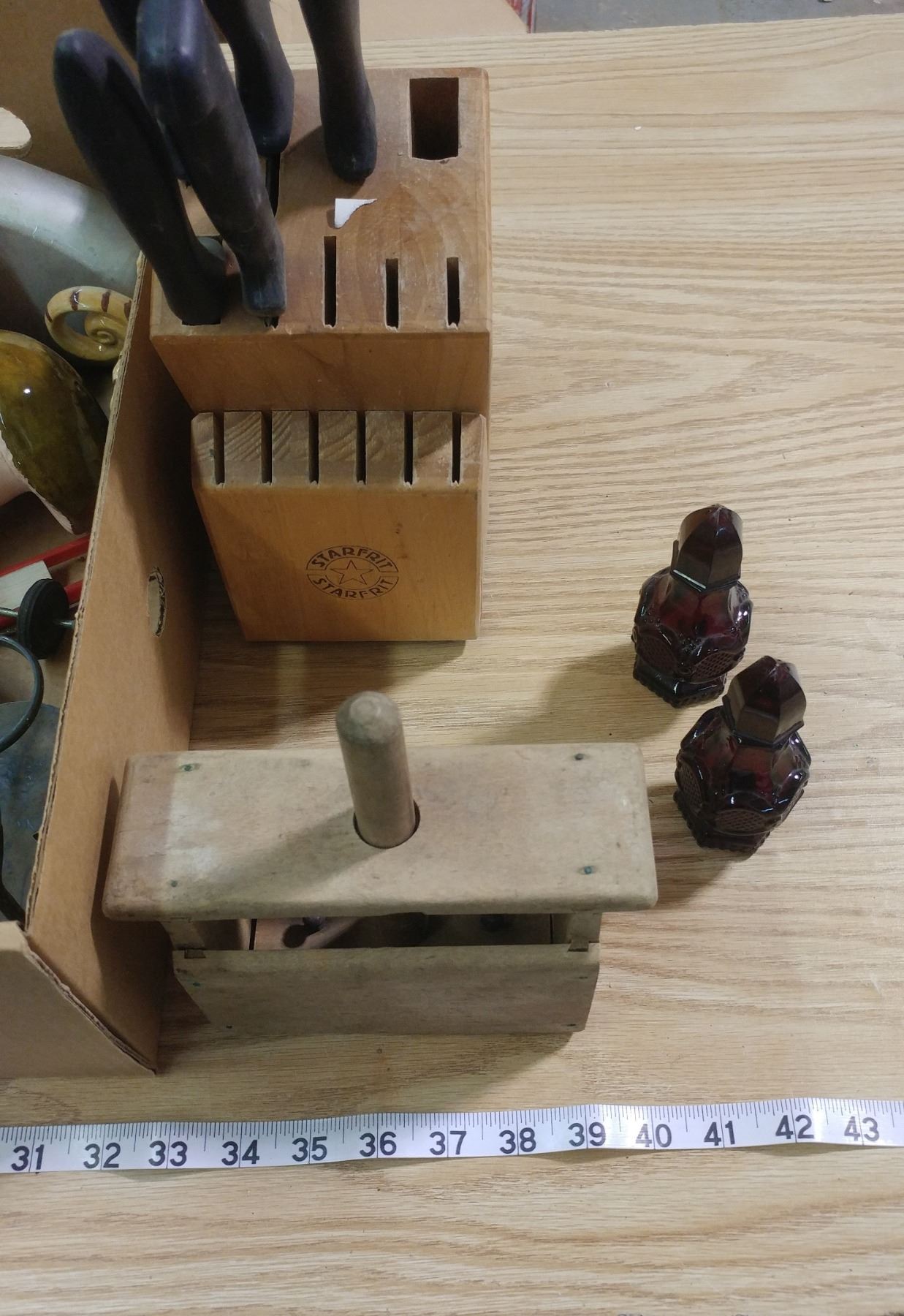 LOT OF COLLECTIBLES (BUTTER PRESS, STARFRIT KNIFE BLOCK, ETC.)