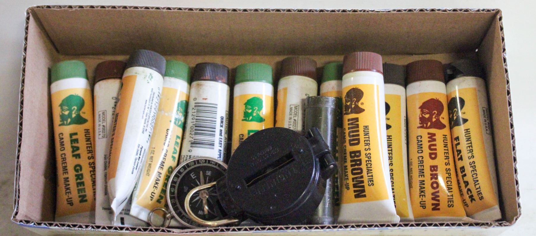 LOT OF COMPASSES AND CAMOUFLAGE FACE PAINT