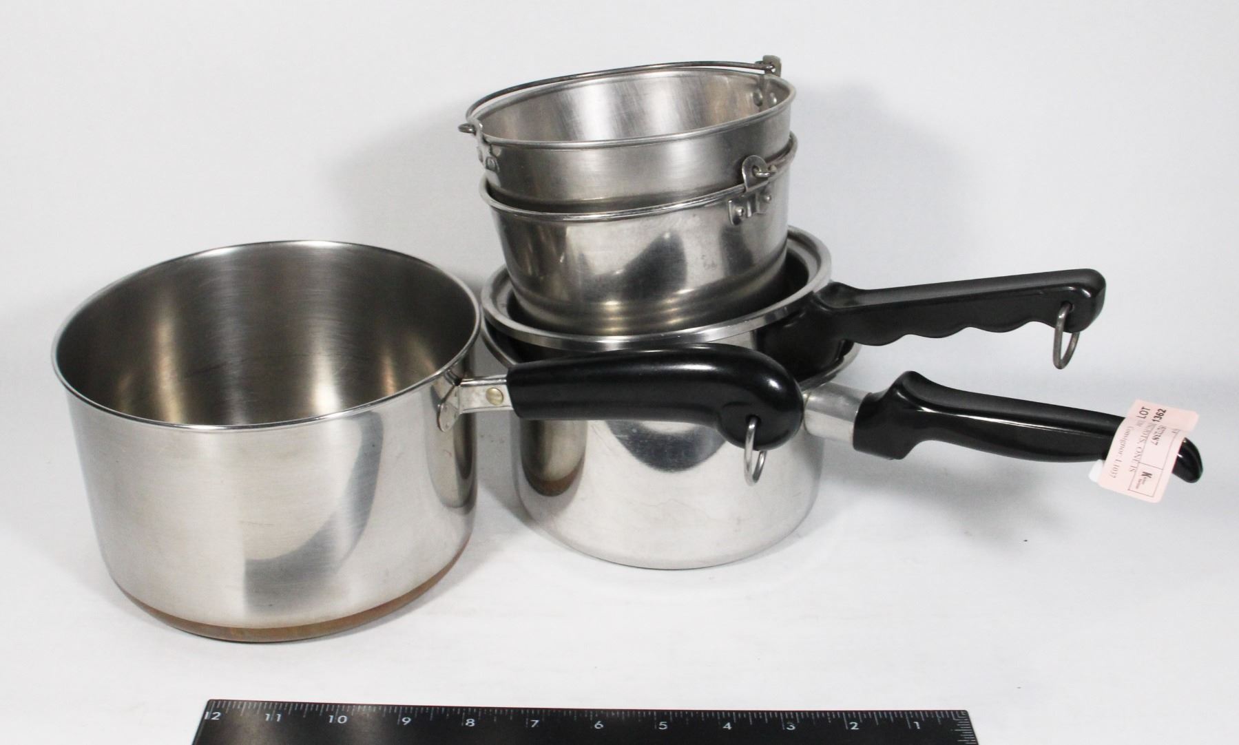 LOT OF COOKING POTS, ONE IS COPPER BOTTOM