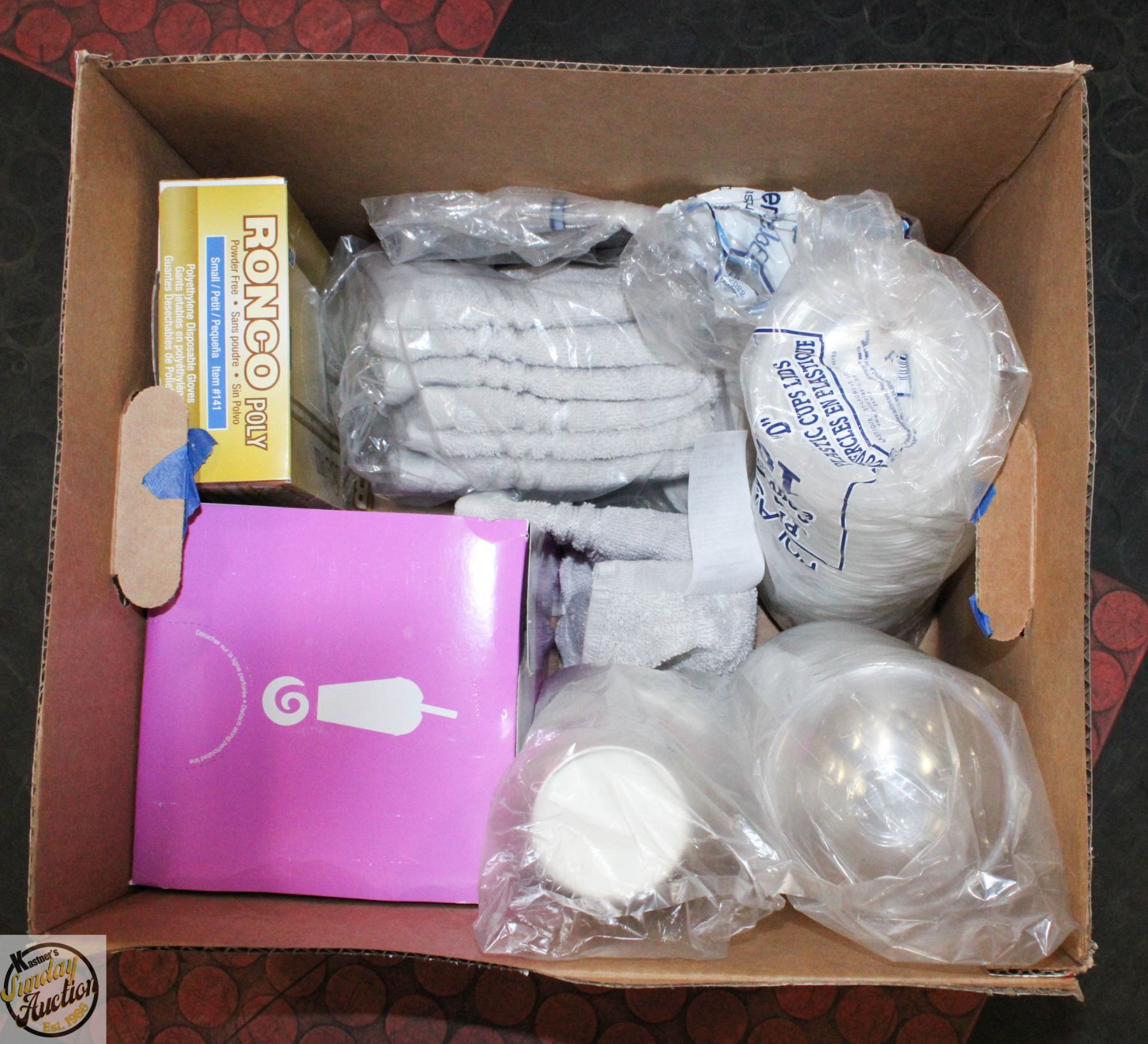 LOT OF DISPOSIBLE CUPS, GLOVES, AND STRAWS