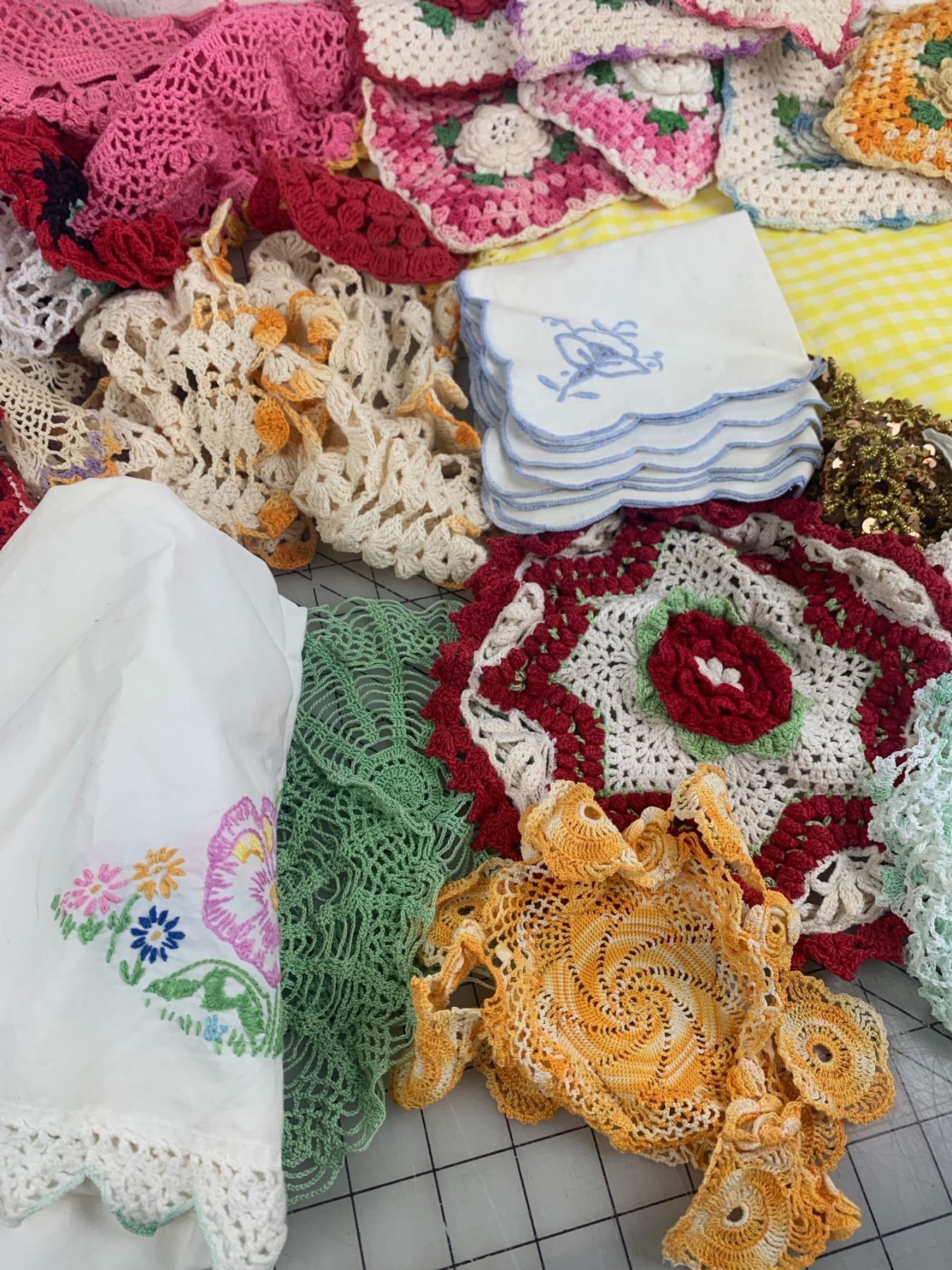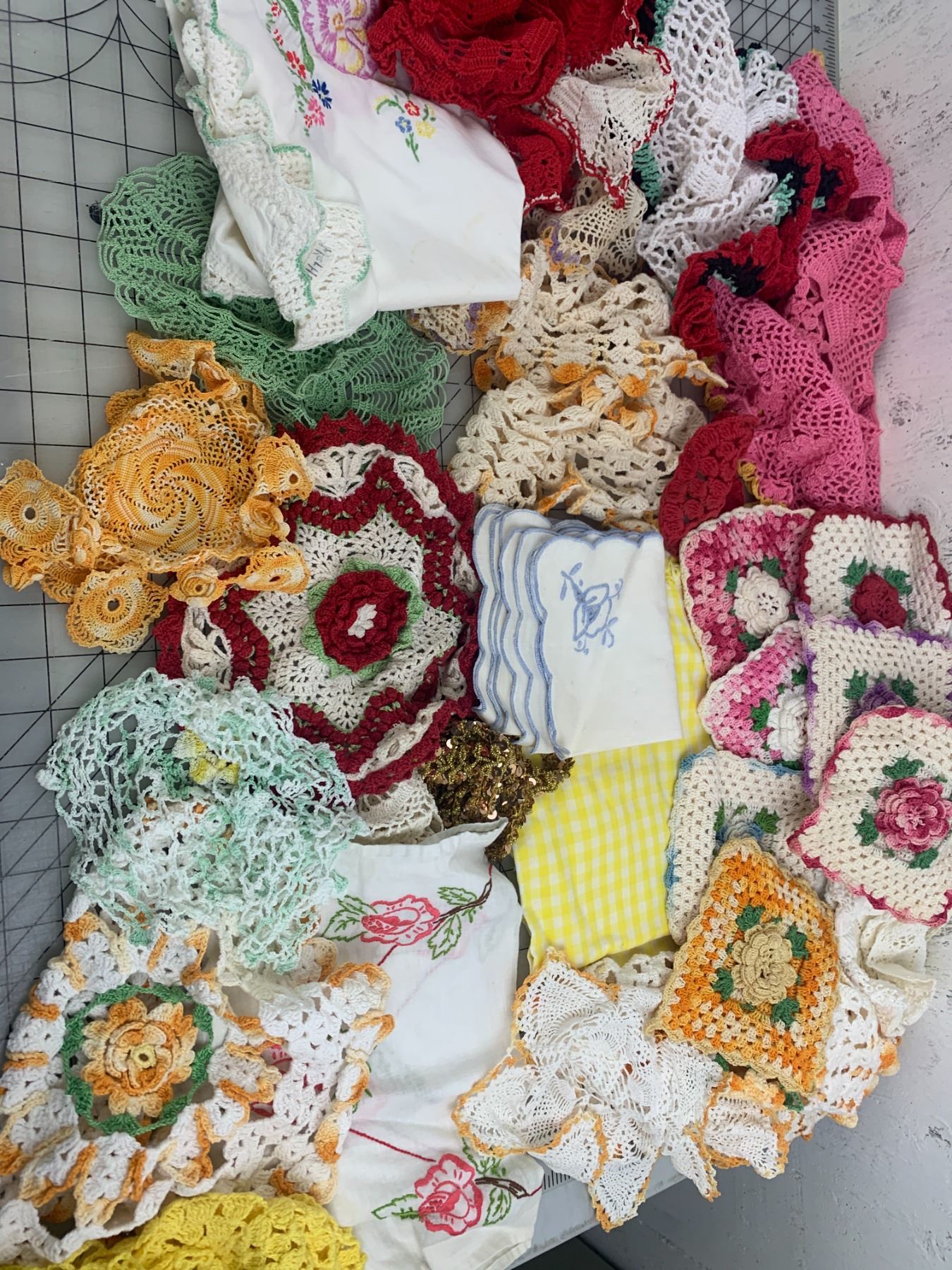 LOT OF DOILIES CROCHET STITCHING ETC