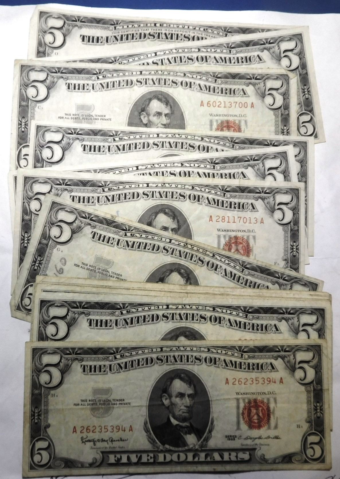 LOT OF EIGHTEEN $5.00 1963 FEDERAL NOTES F/VF (18 NOTES)
