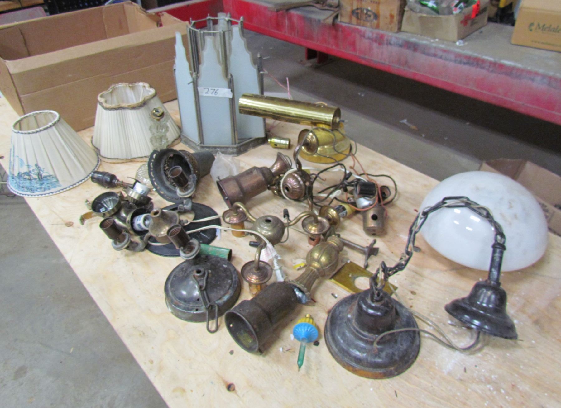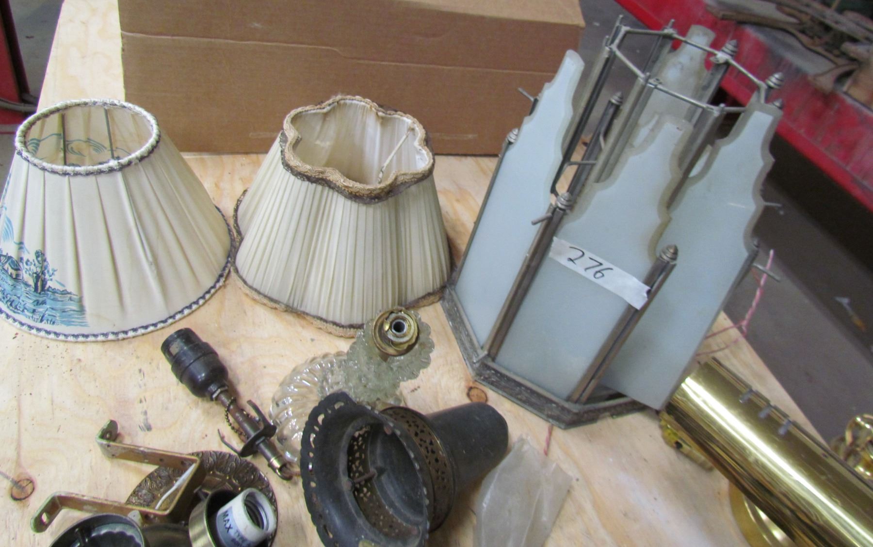 LOT OF ELECTRICAL LAMP PARTS (SHADES, BRASS, ETC)