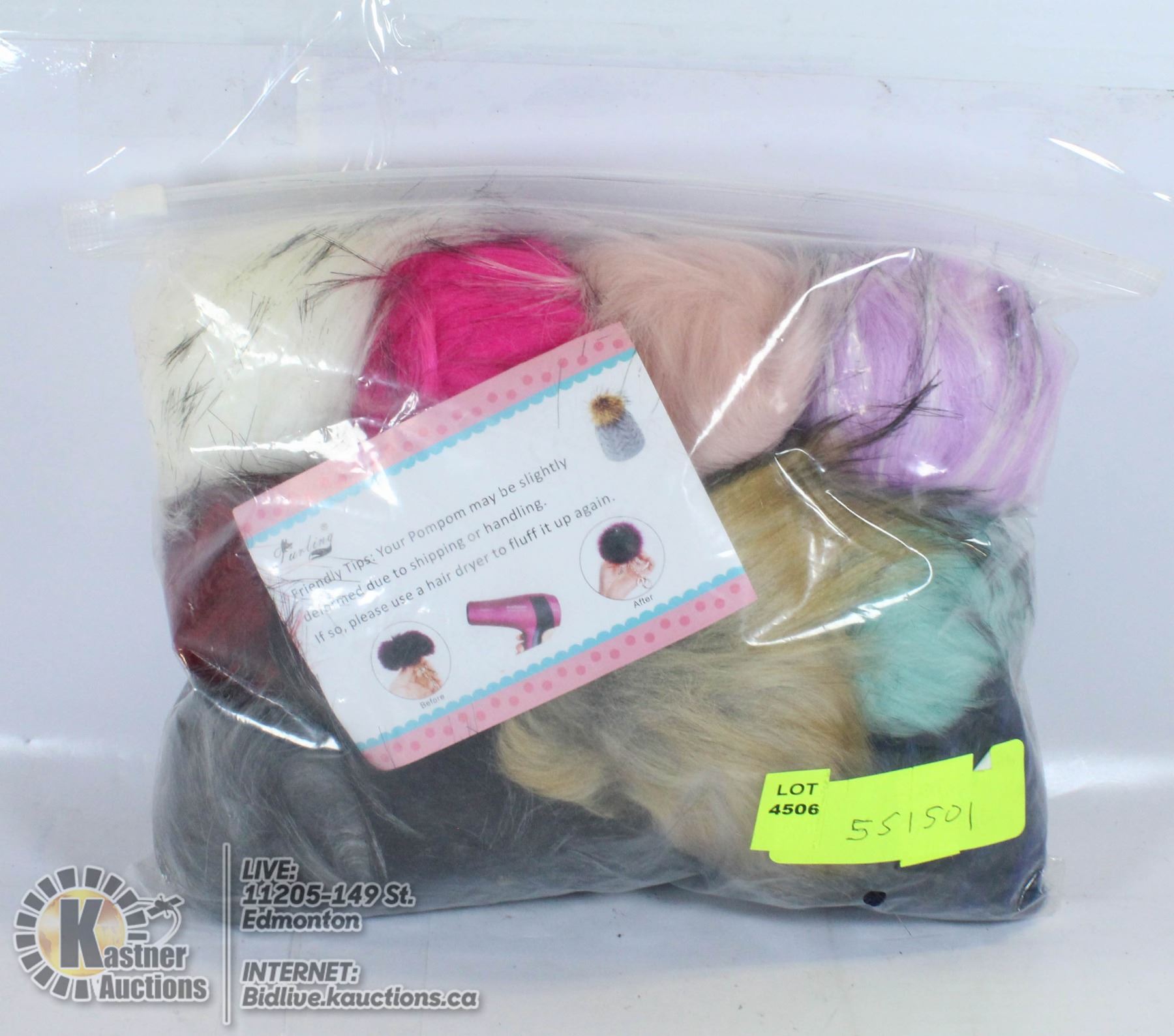 LOT OF FAUX FUR POM POMS - SNAP ON