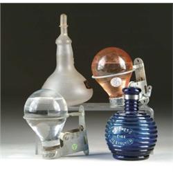 LOT OF FIRE GRENADES. Lot includes a rare sapphire blue “Harkness Fire Destroyer”, and two other clear glass grenades with holders. SIZE: Varies. CONDITION: Good. PF 1-3766 (300-500)