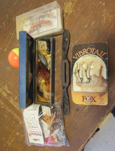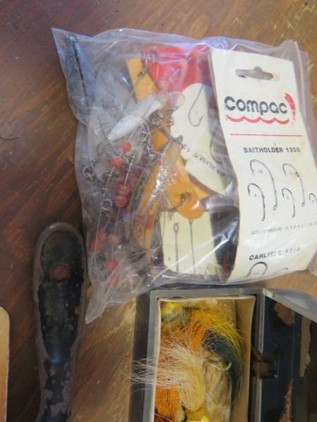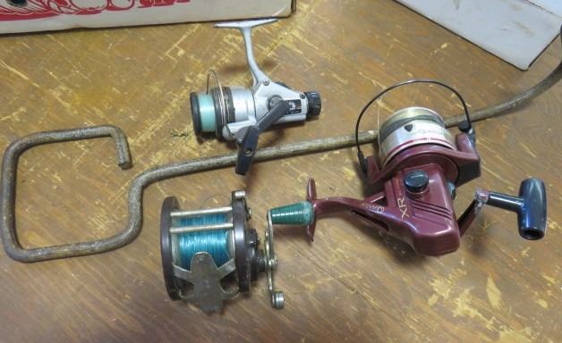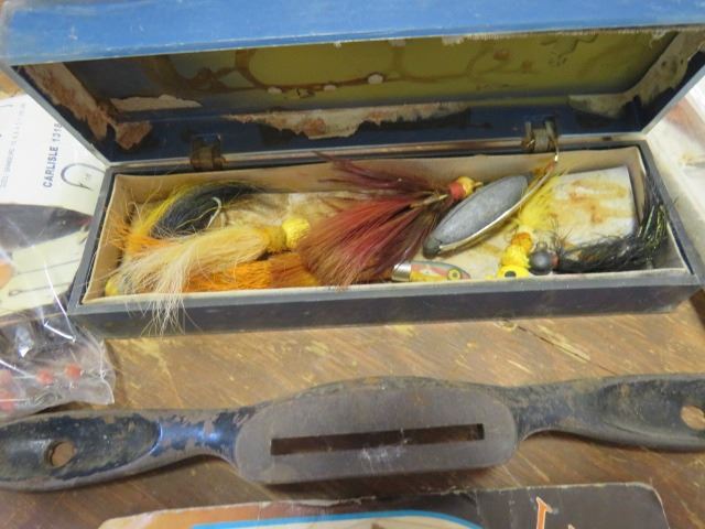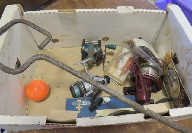 LOT OF FISHING COLLECTABLES (PENN REEL, GAFF, HOOKS, ETC)