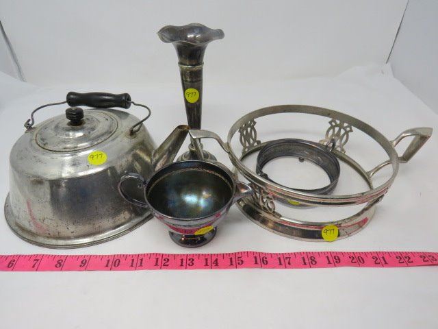 LOT OF FIVE MISC ITEMS -TEAPOT, CANDLE STICK, CREAM POURER, ETC