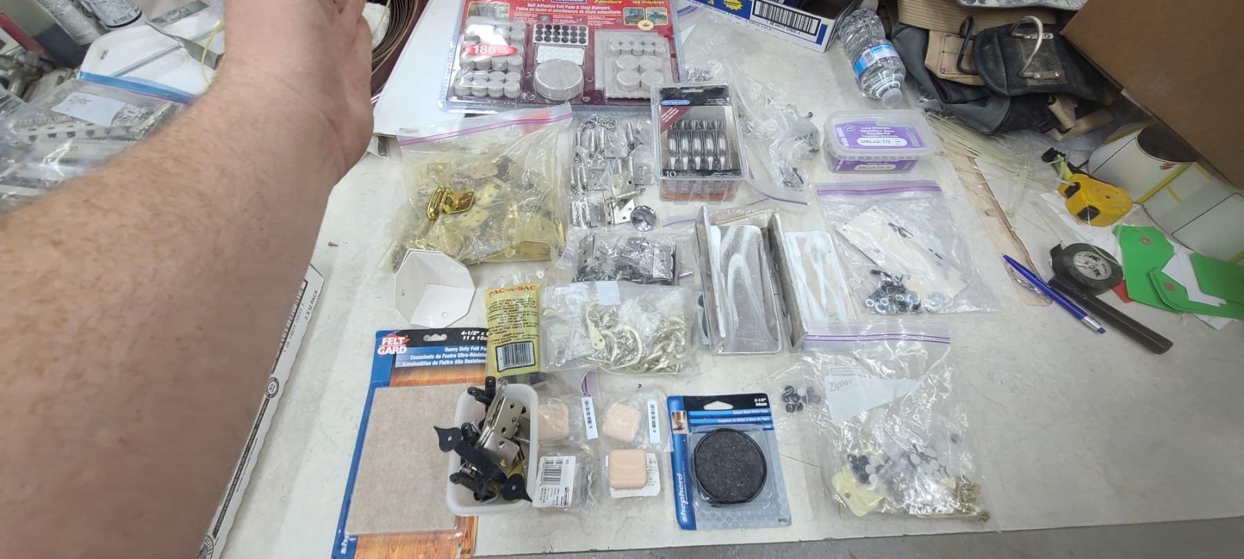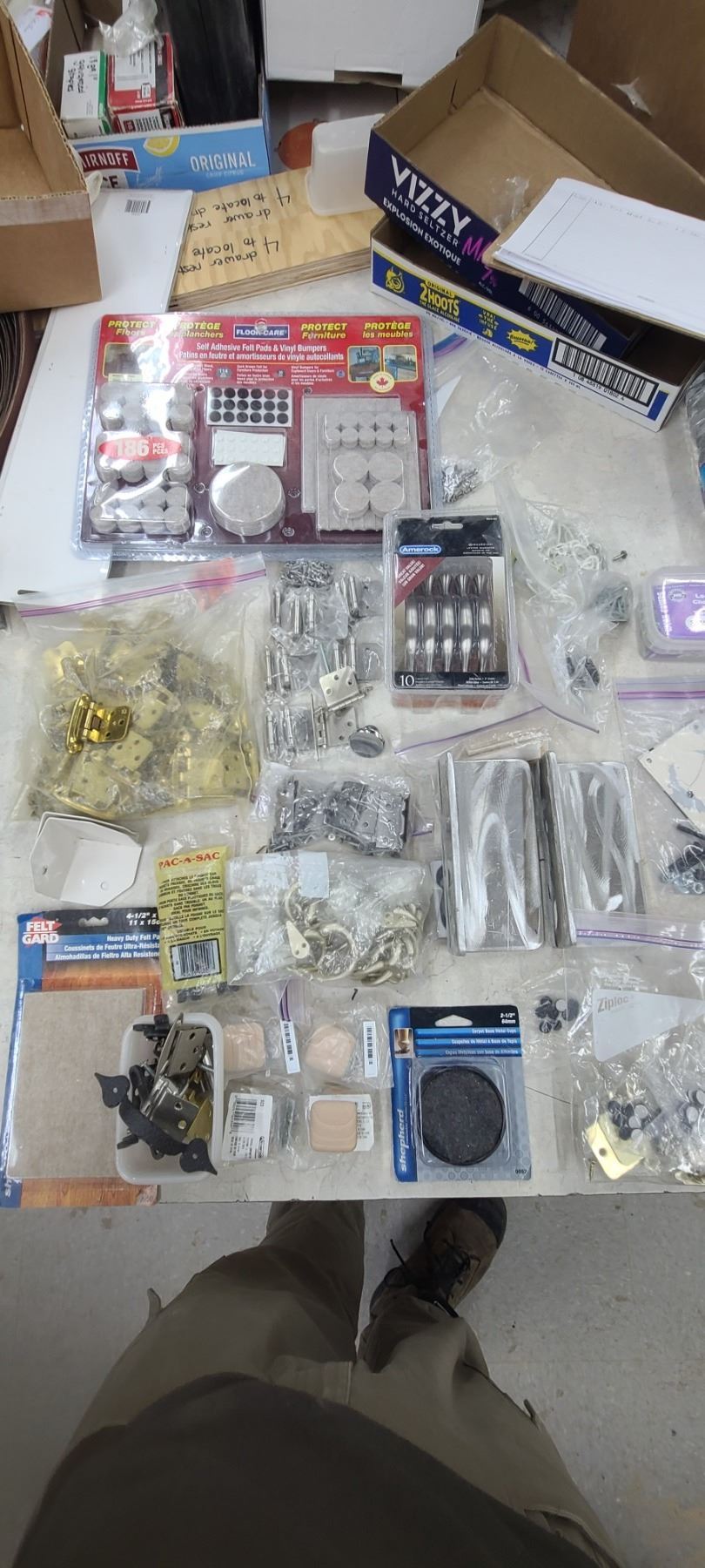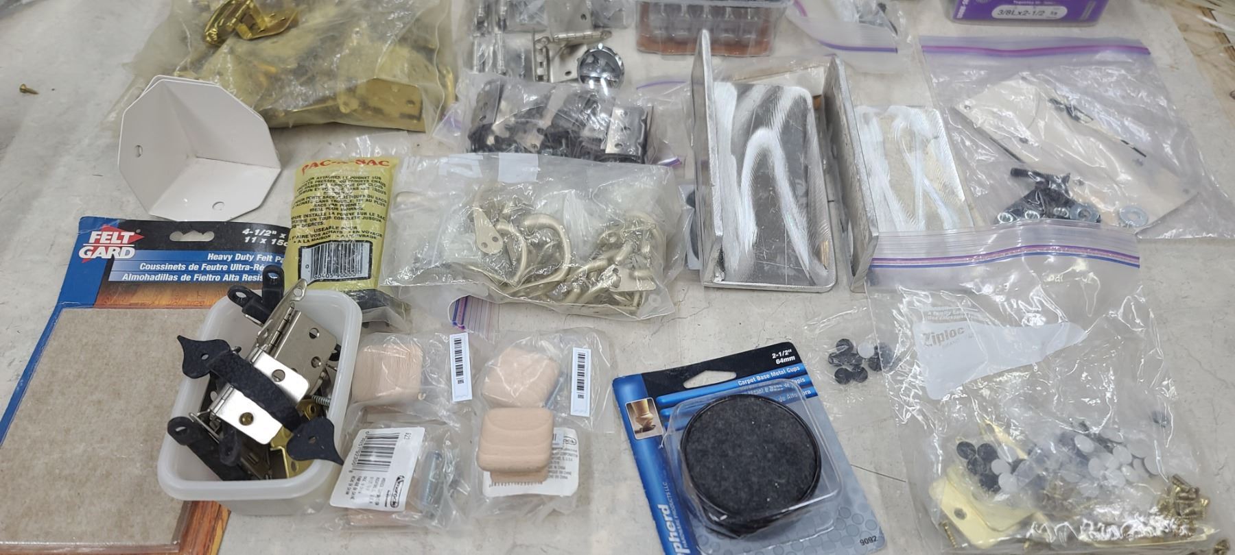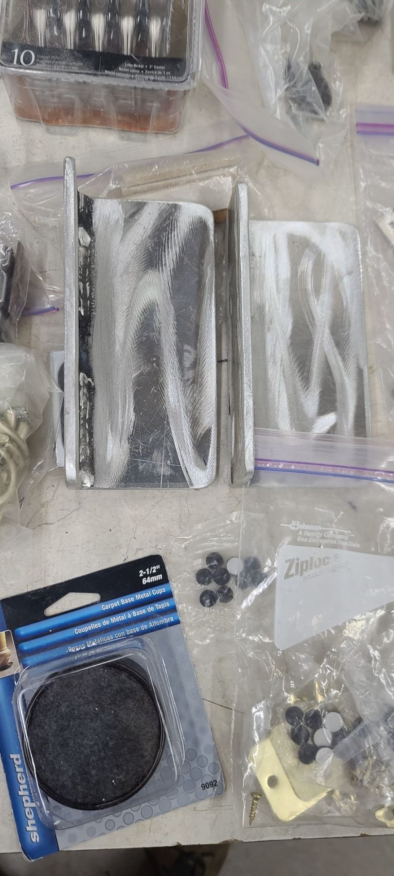 LOT OF FLOOR PROTECTORS/HINGES AND MORE PLEASE SEE IMAGES