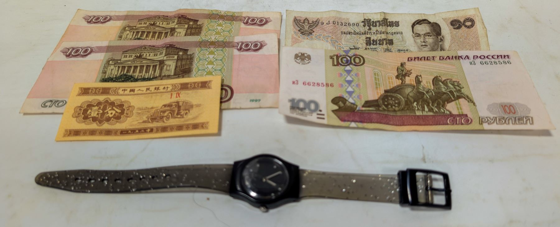 LOT OF FOREIGN PAPER BILLS W WATCH