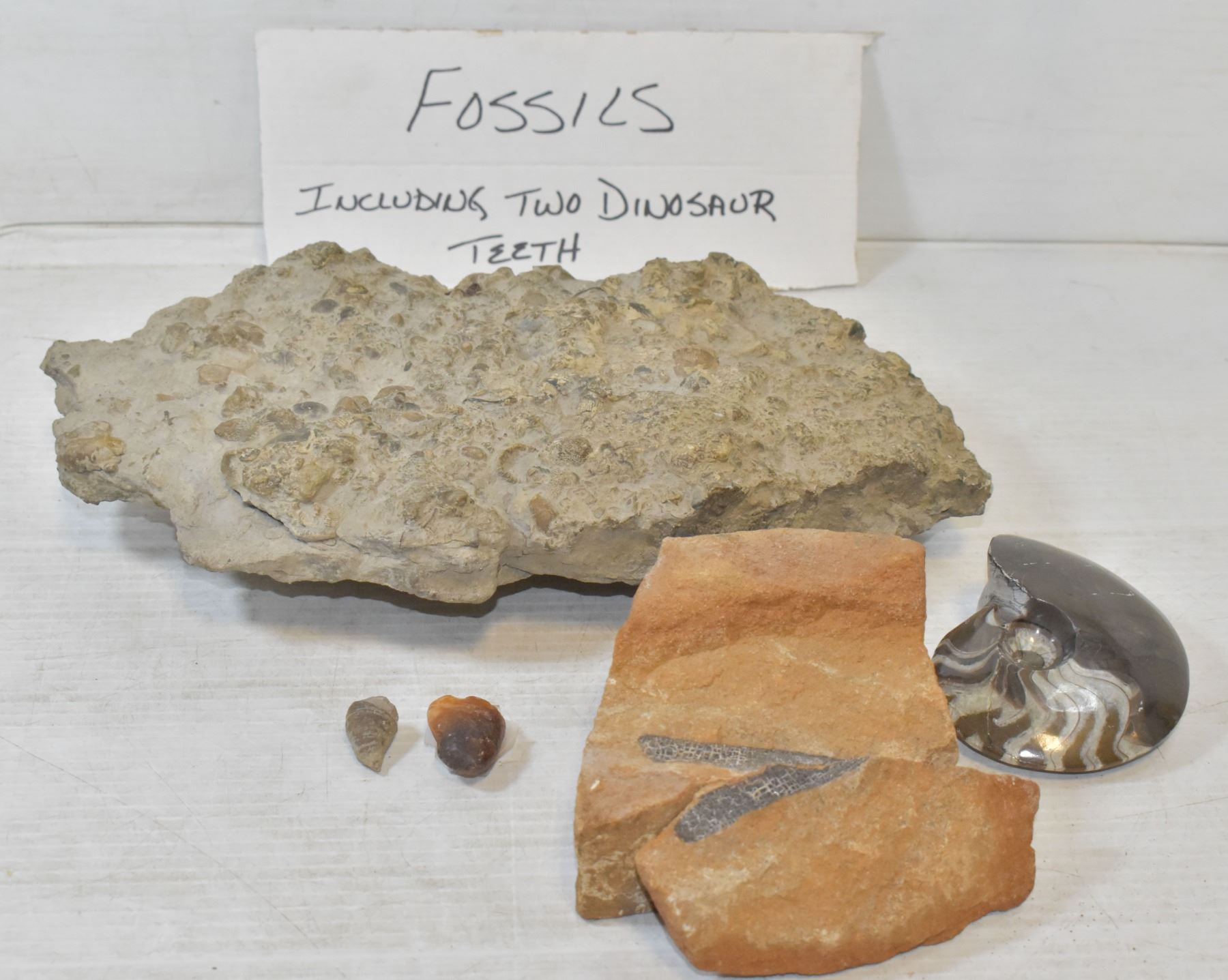 LOT OF FOSSILS W/ DINOSAUR TEETH