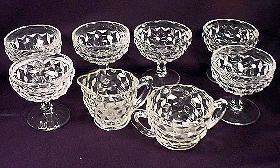 LOT OF FOSTORIA GLASSWARE - 6 Sherbets, Creamer and Sugar
