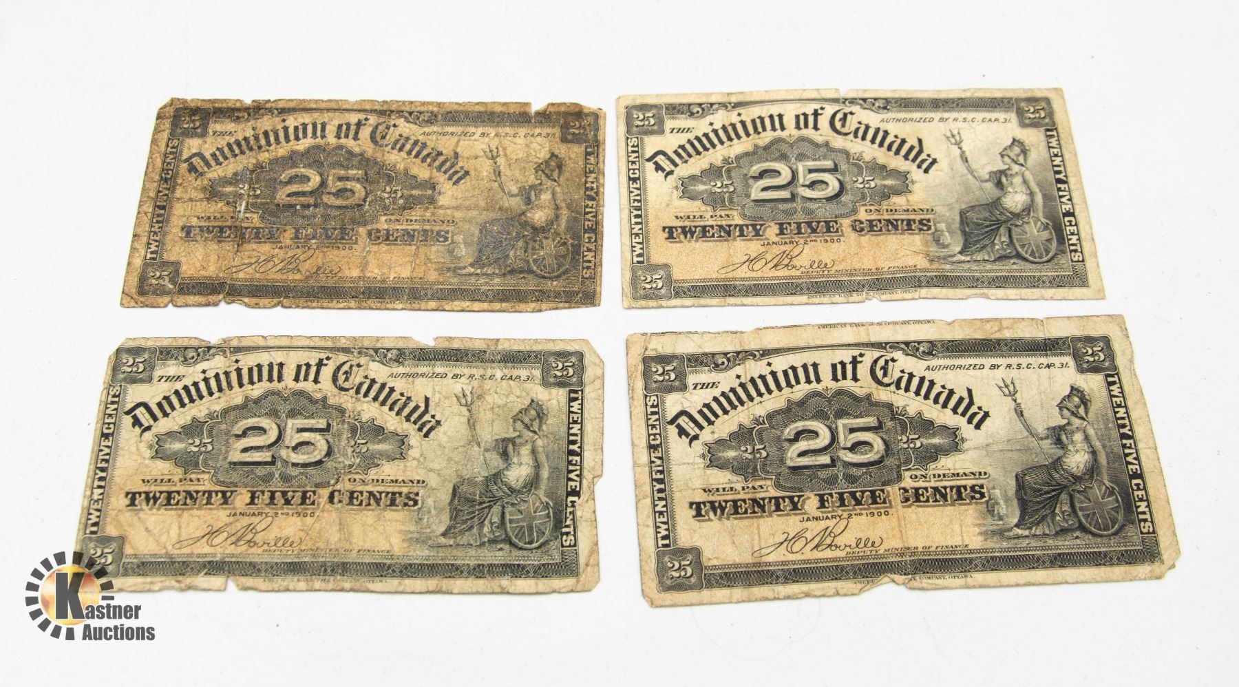 LOT OF FOUR 1900 DOMINION OF CANADA 25 CENT NOTES