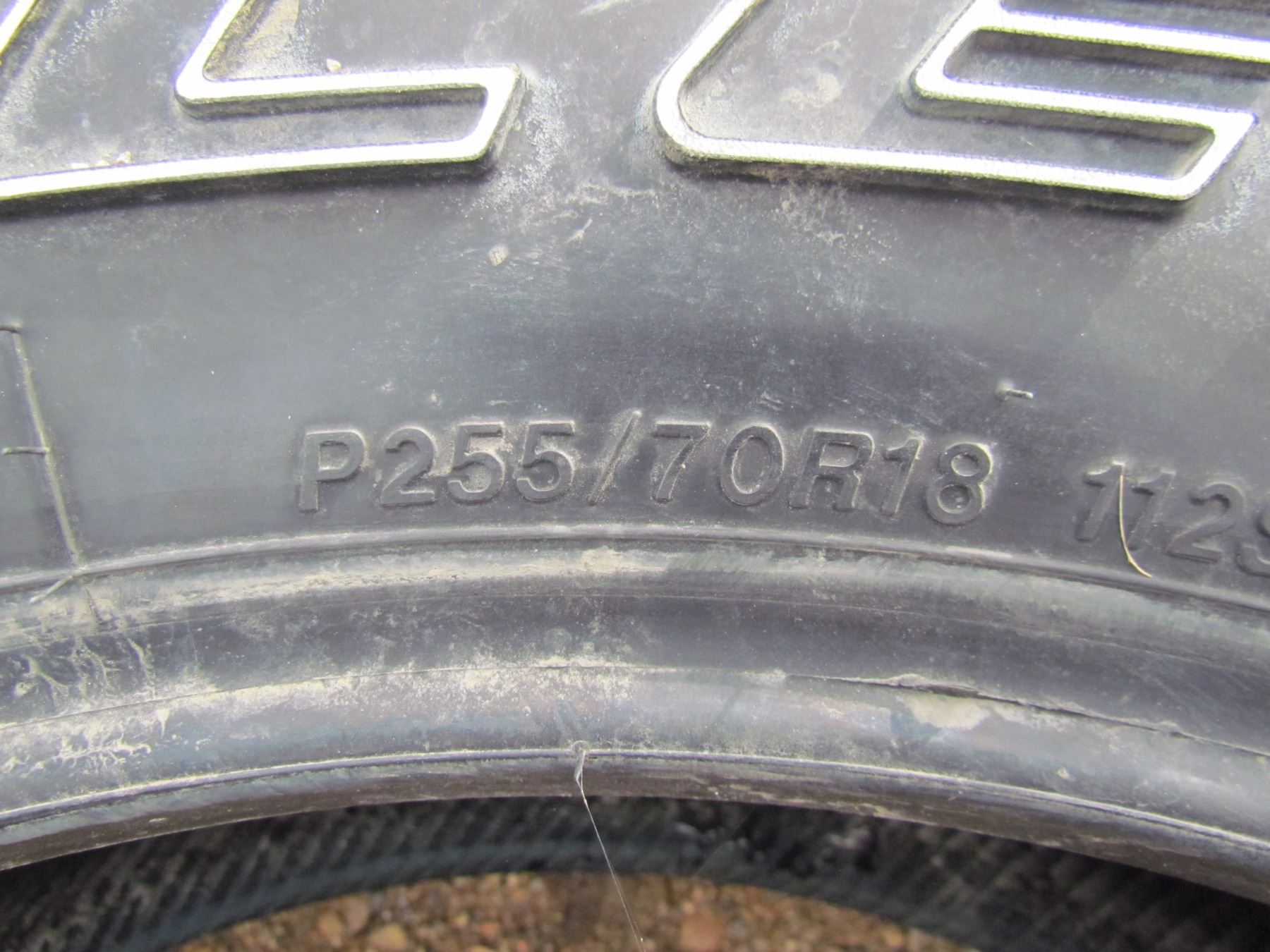 1 X FIRESTONE 275-70-18 "TRANSFORCE HT", 1 X FIRESTONE 245-65-17 "DESTINATION A/T", 1 X BRIDGESTONE 255-70-17 "DUELER", 1 X GOODYEAR 175-90-18 SPARE TIRE W/ RIM