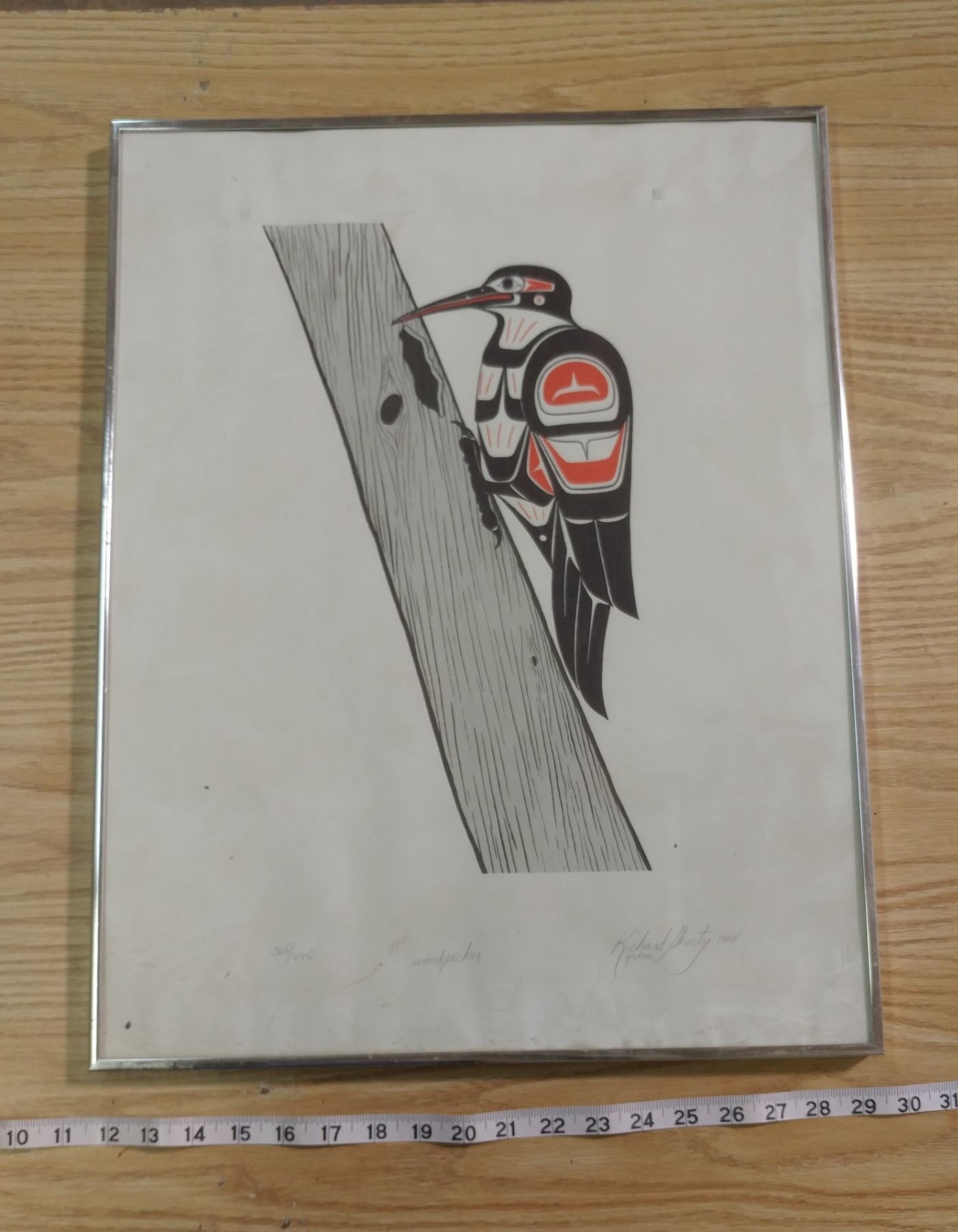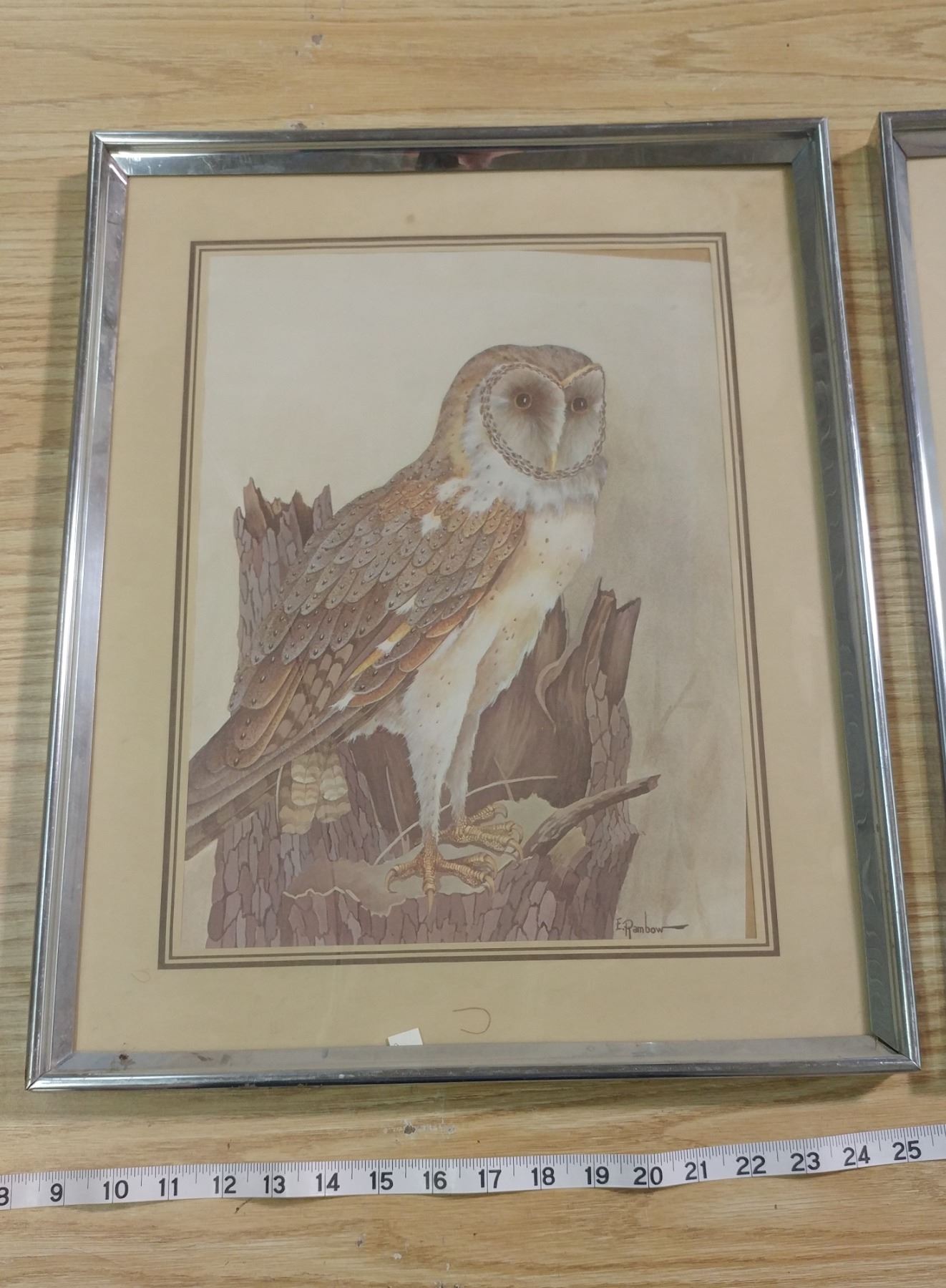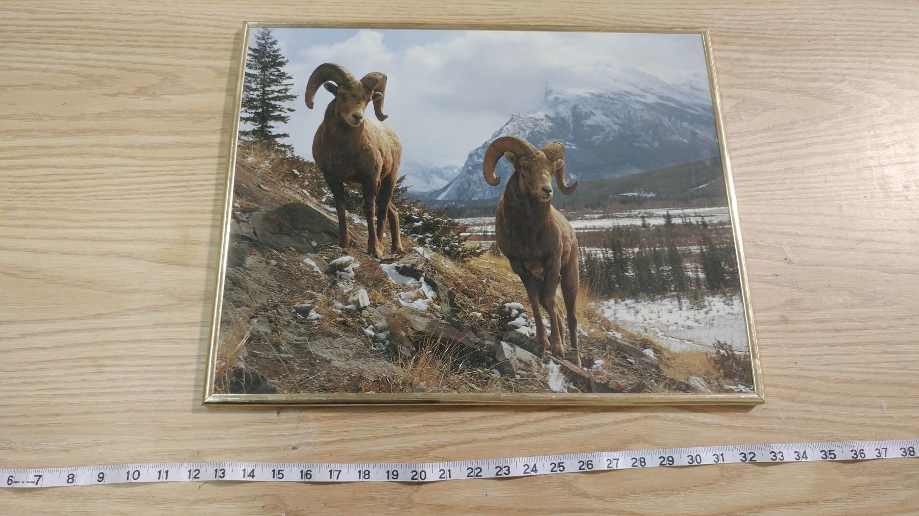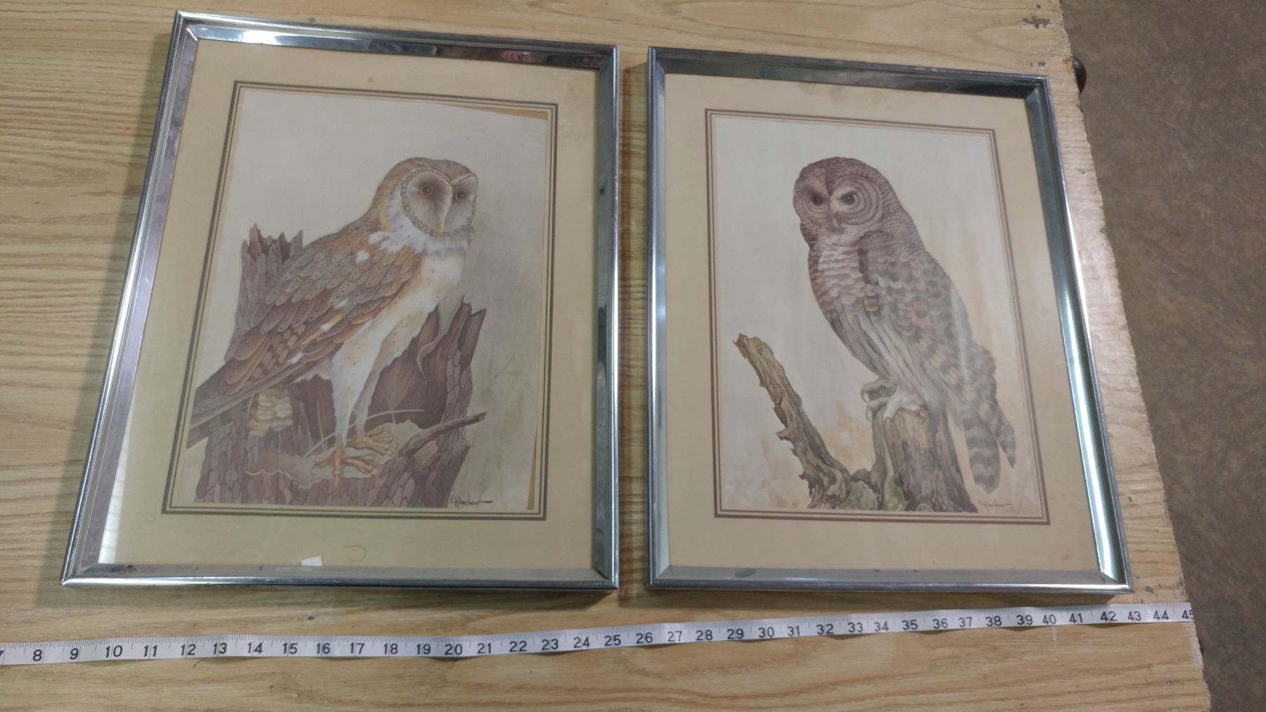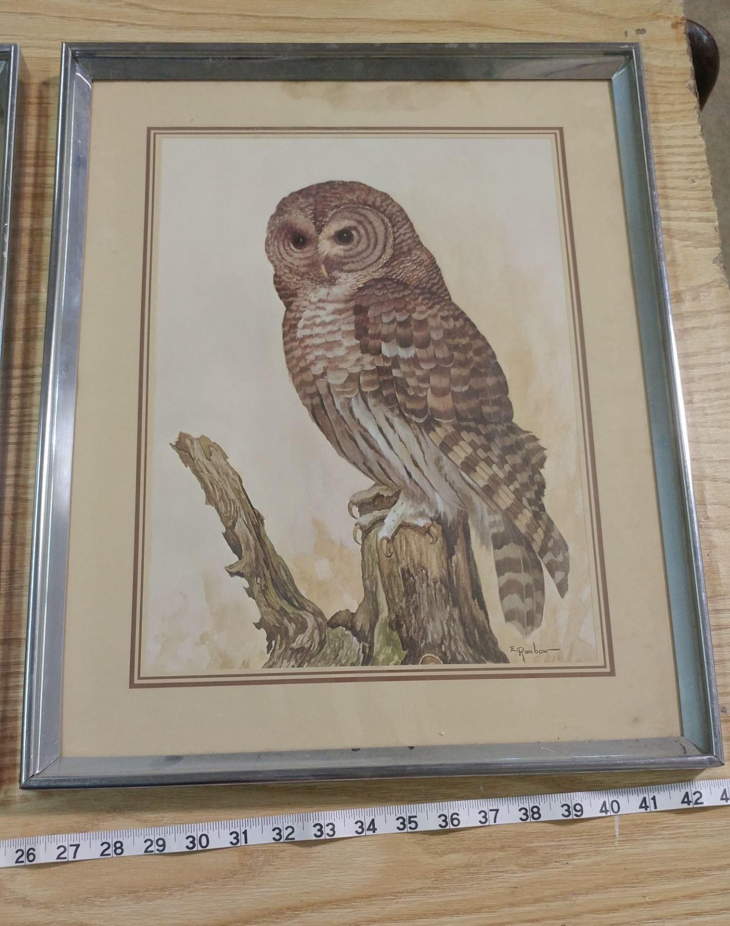 LOT OF FOUR PICTURES (2 OWL PICTURES, WOODPECKER AND SHEEP)
