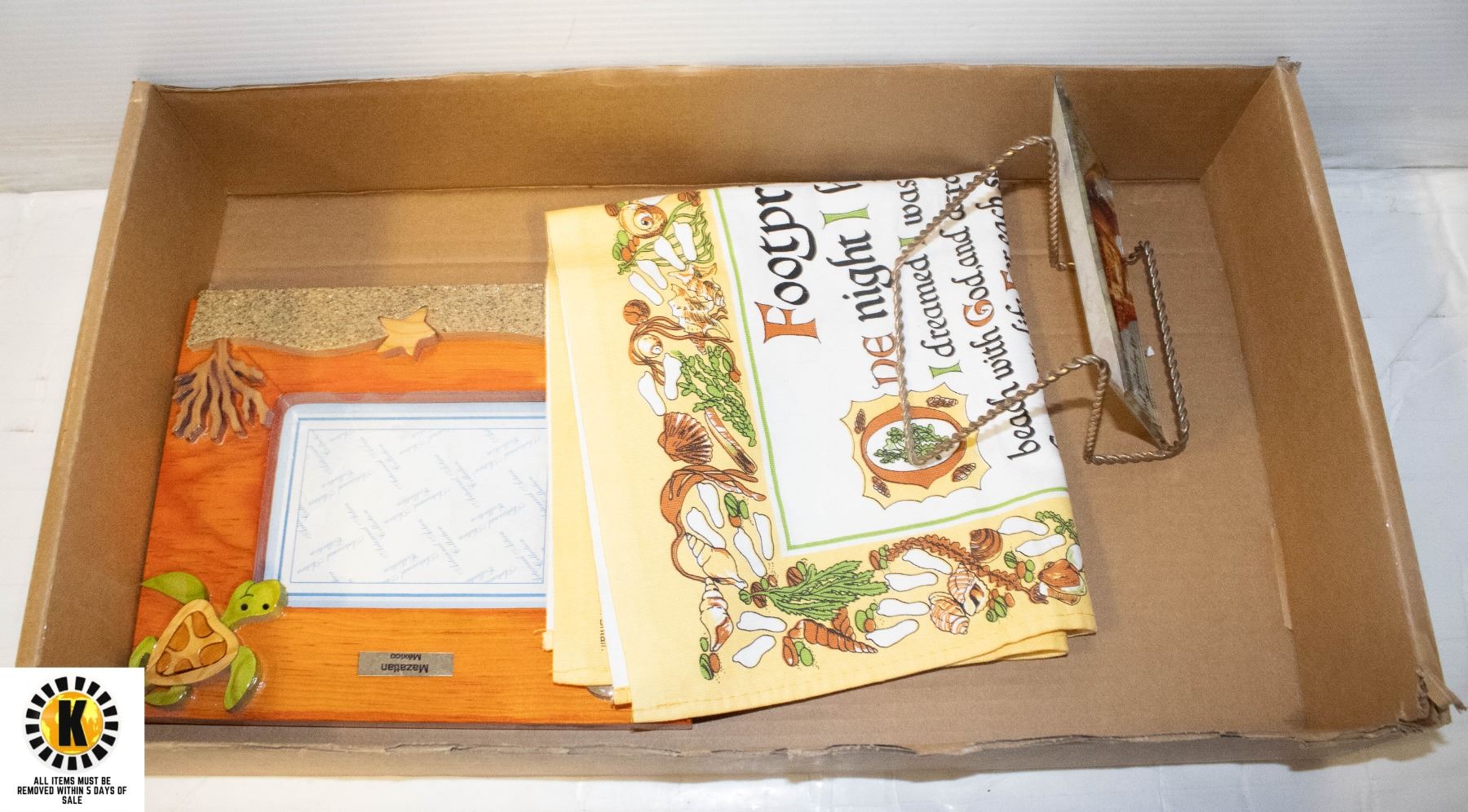 WITH STAND 5 3/4? X4?, NEW MAZATLAN MEXICO HANDCRAFTED ORANGE WOOD FRAME 9 1/4?X 7 1/2?, NEW FOOTPRINTS POEM BANNER, COTTON, FROM IRELAND, 30?X18?
