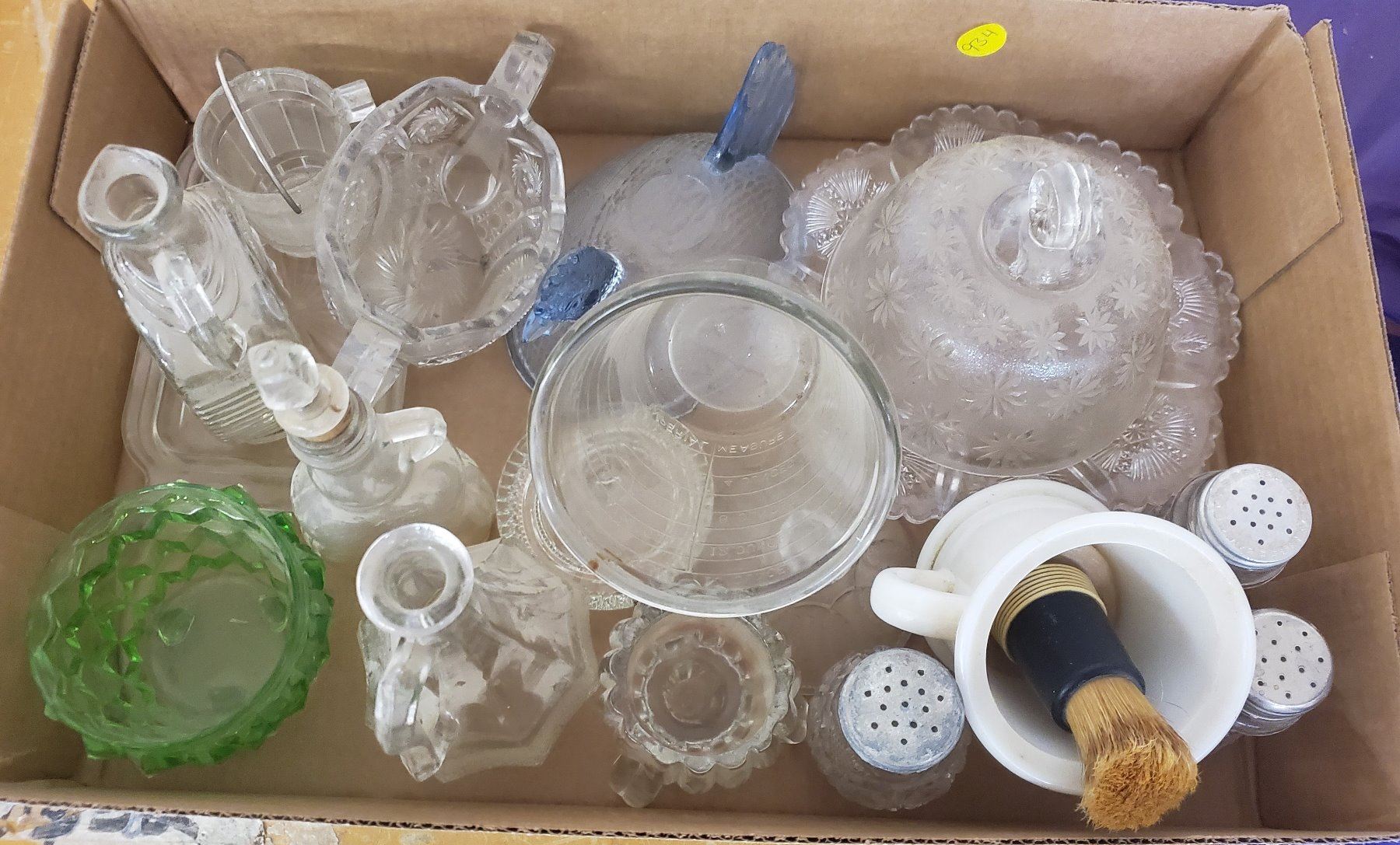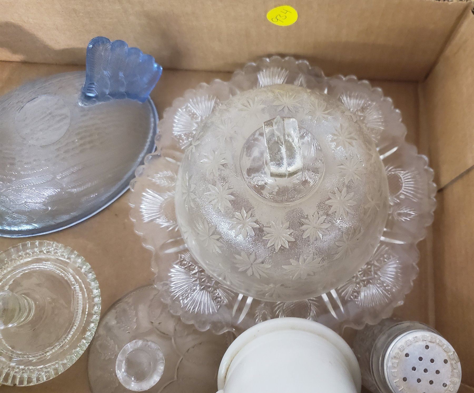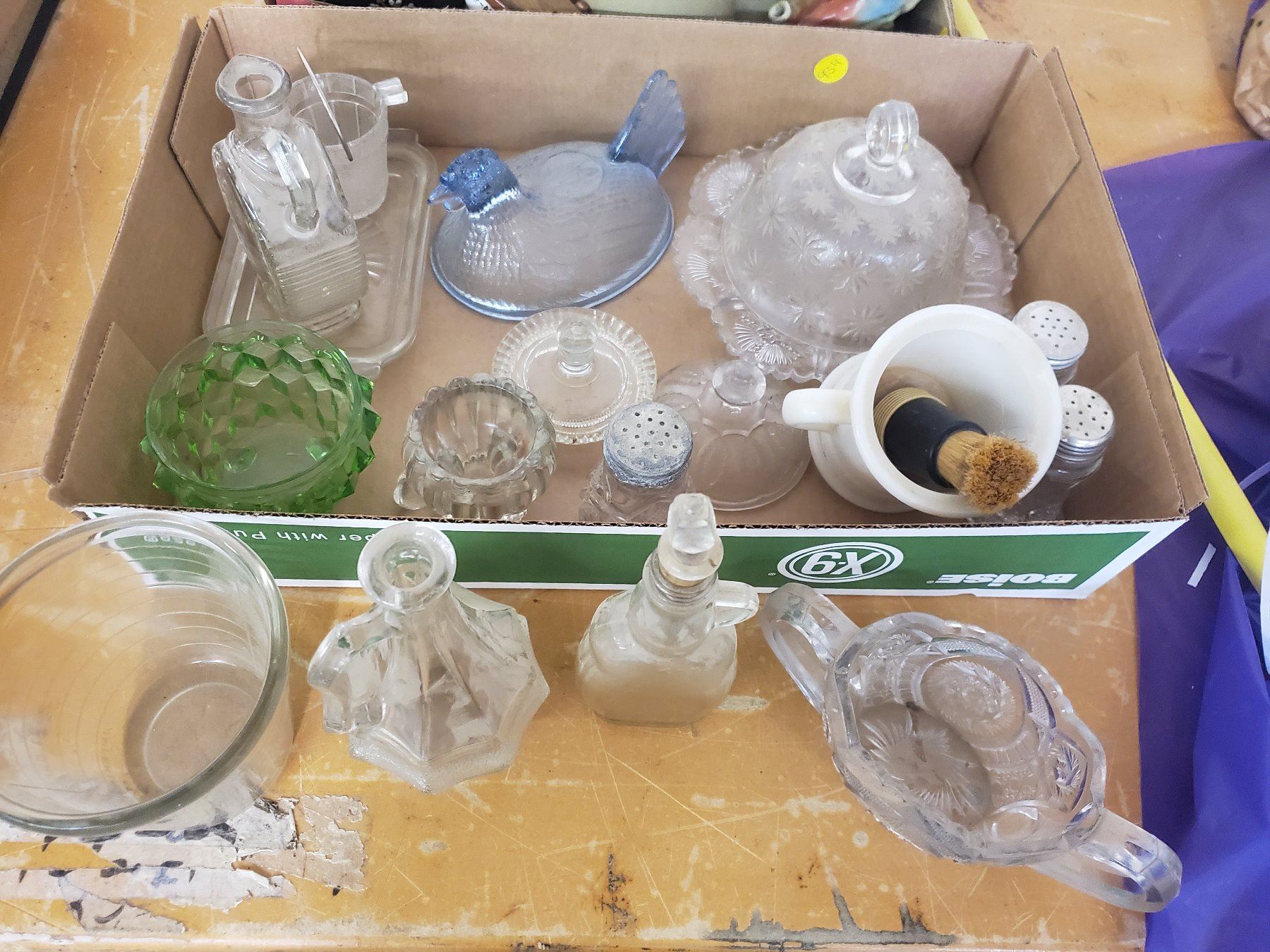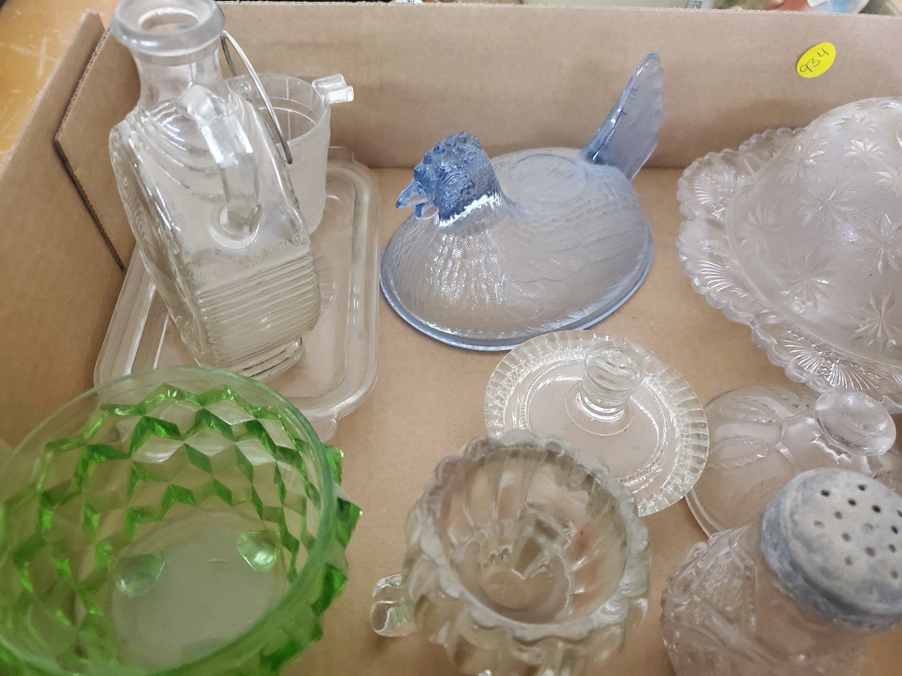 LOT OF GLASSWARE, BUTTER DISH ETC