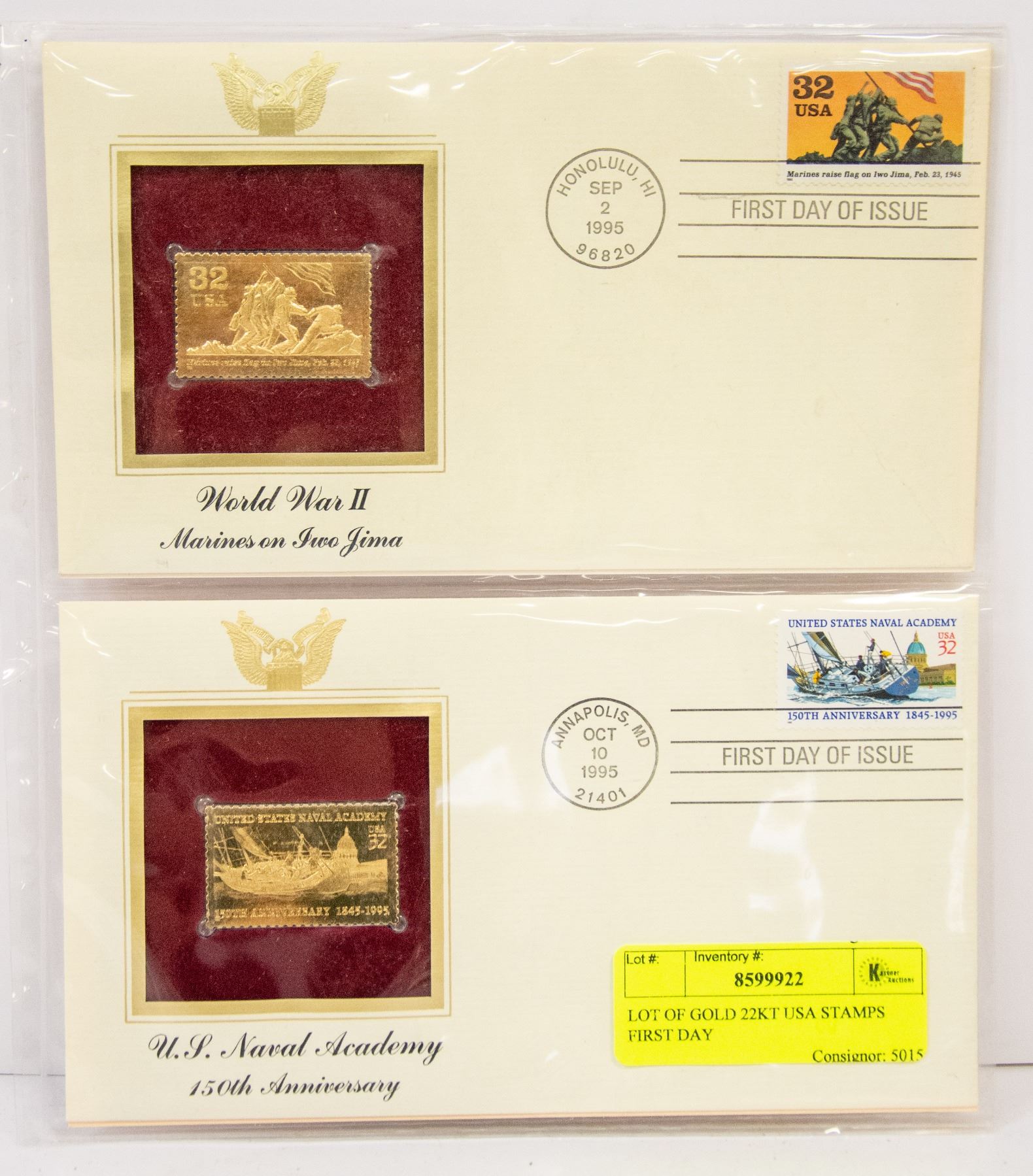 LOT OF GOLD 22KT USA STAMPS FIRST DAY