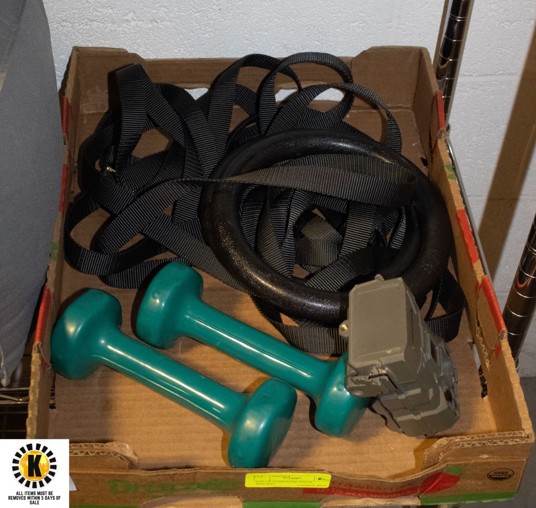 LOT OF GYMNASTIC RINGS, WEIGHTS