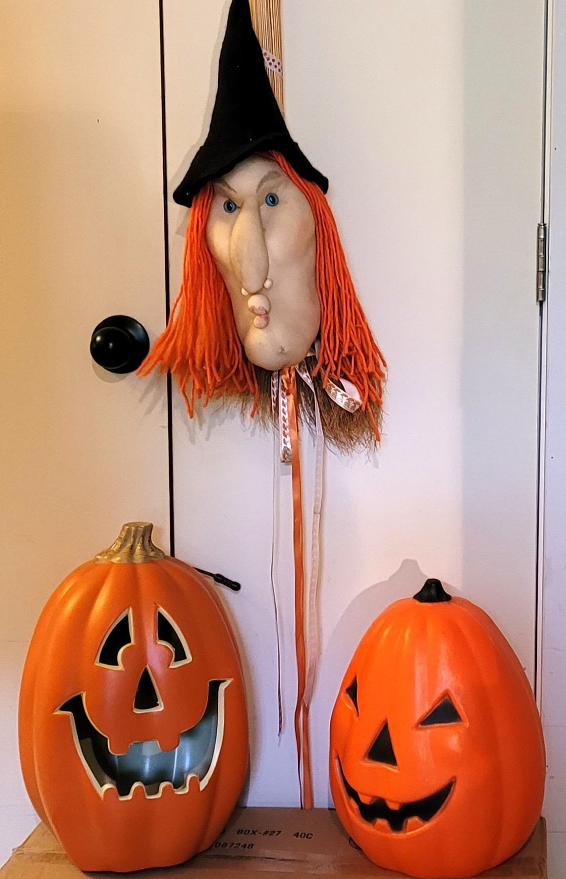 LIGHT UP JACK'O'LANTERNS AND A SOFT SCULPTURE WITCH TO HANG IN YOUR WINDOW OR ON YOUR DOOR & DOOR HANGING WREATH HOLDER **ALL ITEMS MUST BE REMOVED BY 5PM SATURDAY, OCTOBER 19TH 2024. ALL REMAINING ITEMS WILL BE SUBJECT TO A $6.00 PER DAY STORAGE CHARGE. ANY ITEMS REMAINING AFTER MONDAY, NOVEMBER 4TH 2024 WILL BE CONSIDERED FORFEITED. NO REFUNDS WILL BE ISSUED FOR FORFEITED ITEMS. TO SCHEDULE A PICK UP APPOINTMENT CLICK HERE
