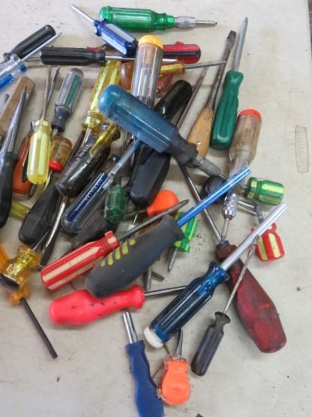 LOT OF HAND TOOLS (SCREWDRIVERS, PLIERS, ETC)