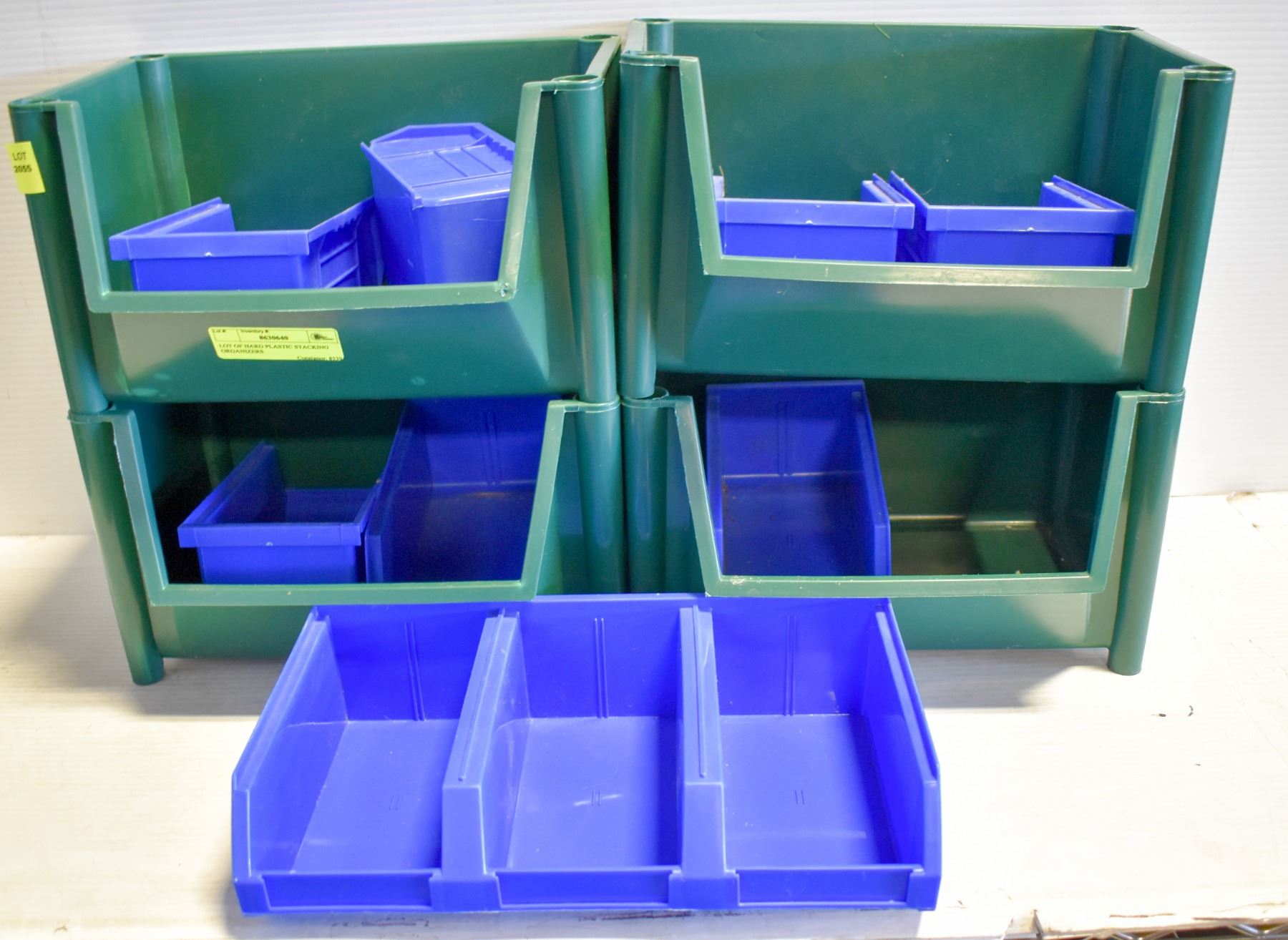 11 BLUE & 4 LARGER GREEN HARD PLASTIC ORGANIZERS FOR CRAFT ROOM OR WORKSHOP