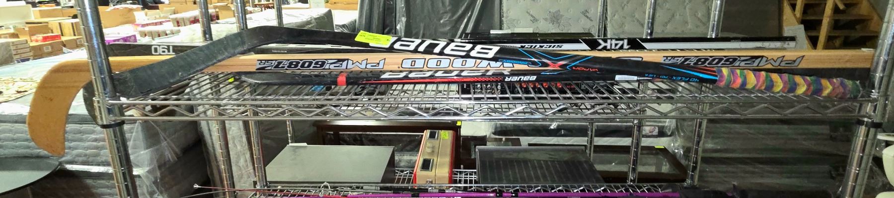 LOT OF HOCKEY STICKS **ALL ITEMS MUST BE REMOVED BY 5PM SATURDAY, MAY 17TH 2025. ALL REMAINING ITEMS WILL BE SUBJECT TO A $6.00 PER DAY STORAGE CHARGE. ANY ITEMS REMAINING AFTER MONDAY, JUNE 2ND 2025 WILL BE CONSIDERED FORFEITED. NO REFUNDS WILL BE ISSUED FOR FORFEITED ITEMS. TO SCHEDULE A PICK UP APPOINTMENT CLICK HERE