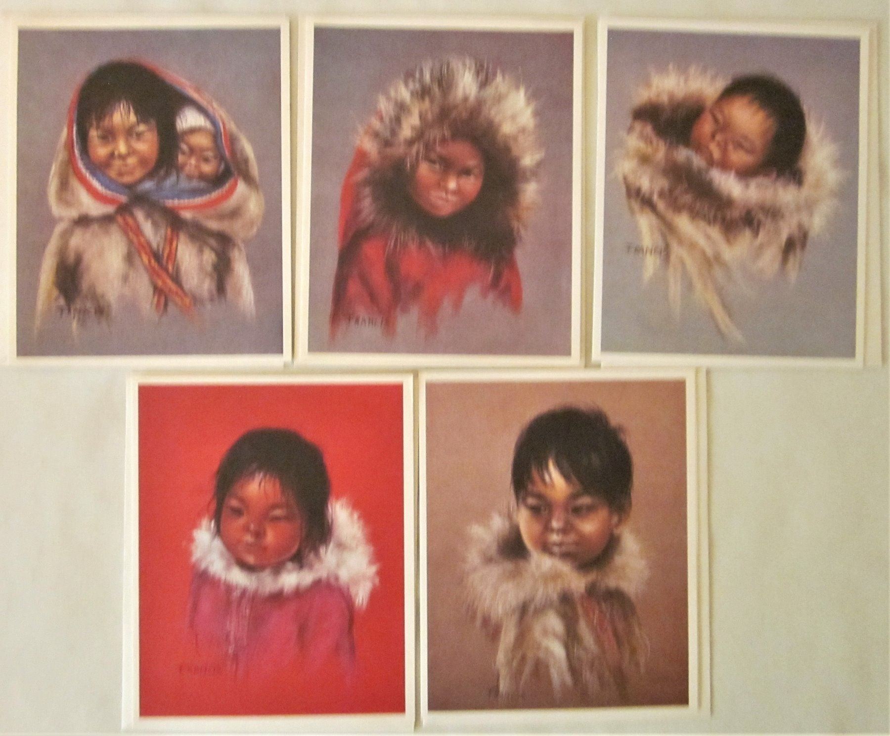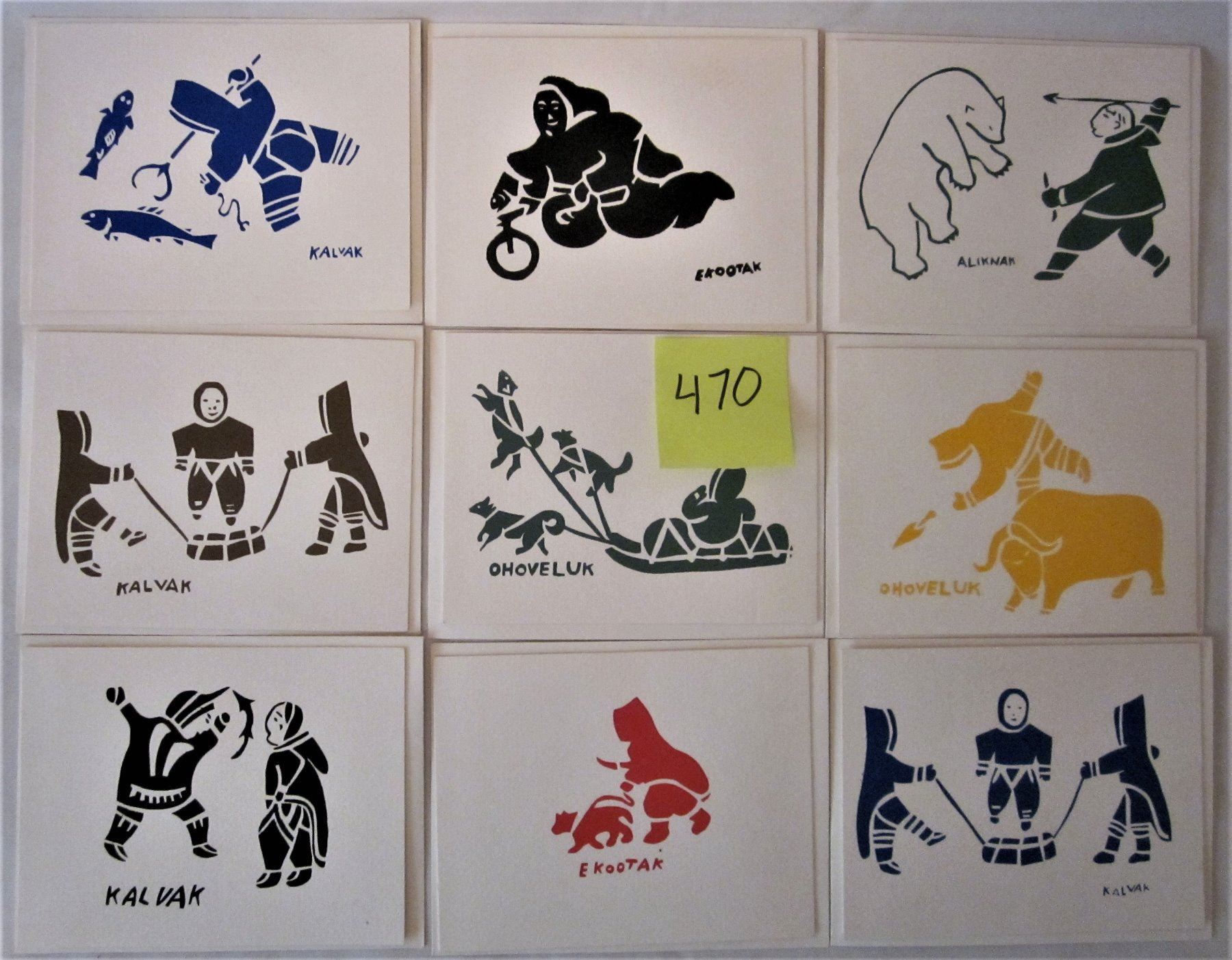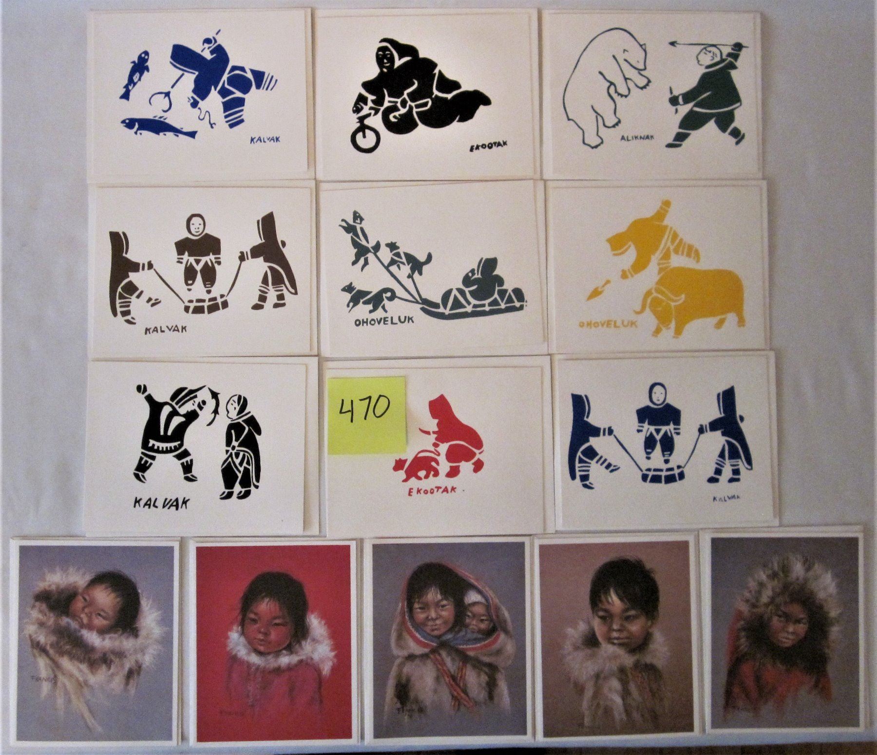 LOT OF HOLMAN HANDMADE BY ESKIMOS N.W.T. 9 DIFFERENT SILK SCREEN CARDS/ENVELOPES 5 1969 CARDS/ENVELOPES